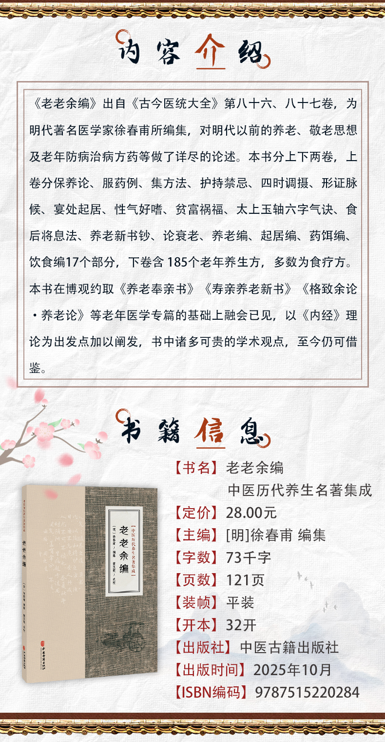 书名:老老余编 中医历代养生名著集成