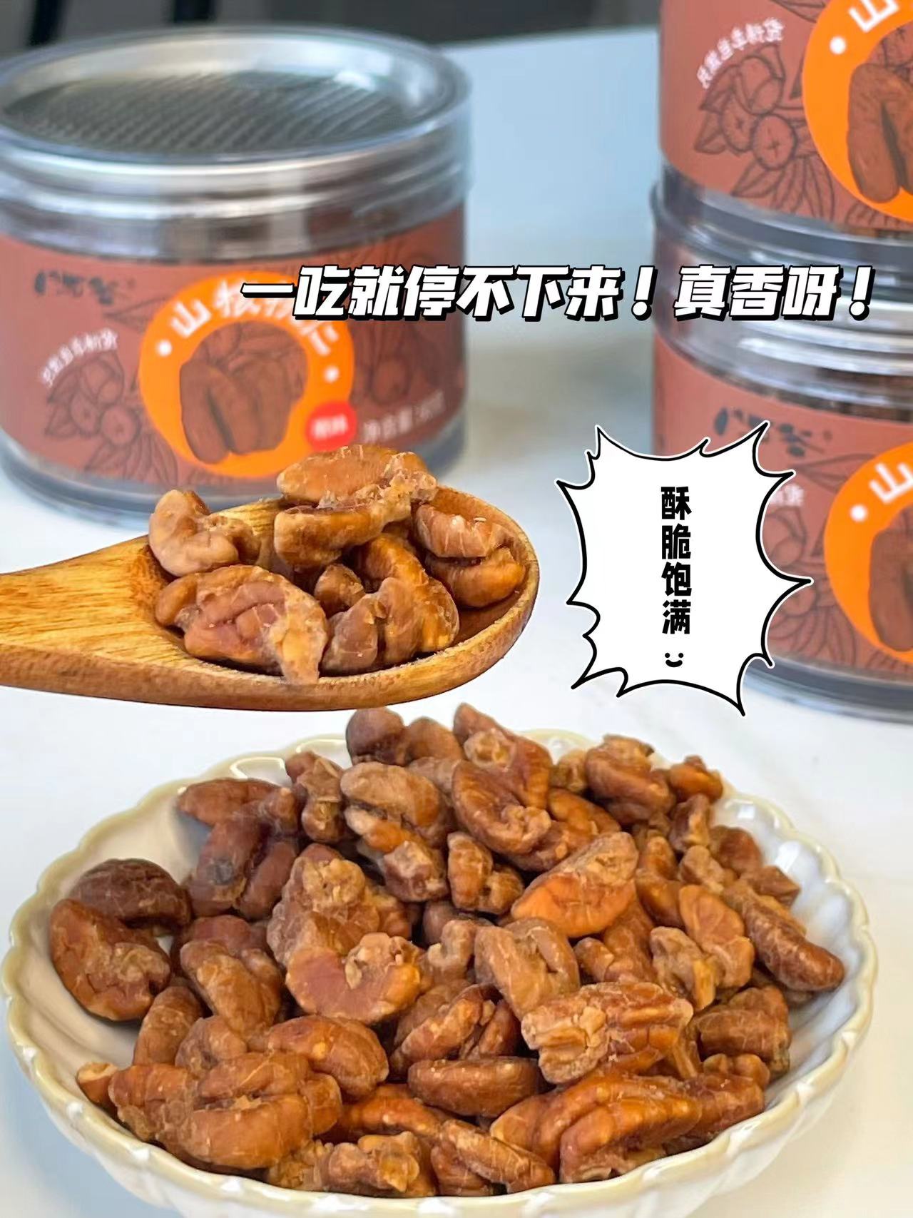 山核桃去掉坚硬的外壳,仅留下饱满的果仁,烘烤过后那叫一个香酥脆,抓一把,别提多过瘾了