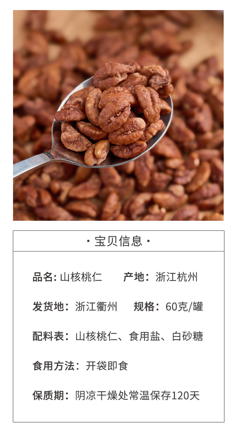 【临安山核桃仁】2025新货上市,每罐60±2克,买4送1,买8送2,每年100000+单,除了少量的糖、盐,无其他添加,松脆酥爽,自然酥香松脆,停不下嘴,上班、追剧、闲聊,好伴侣