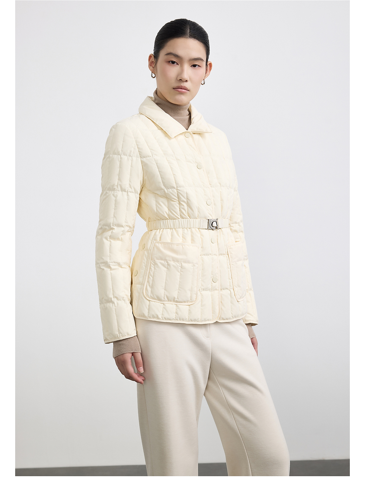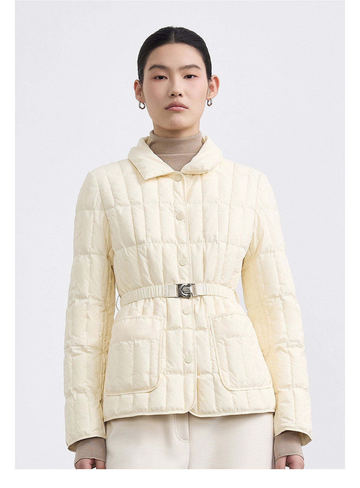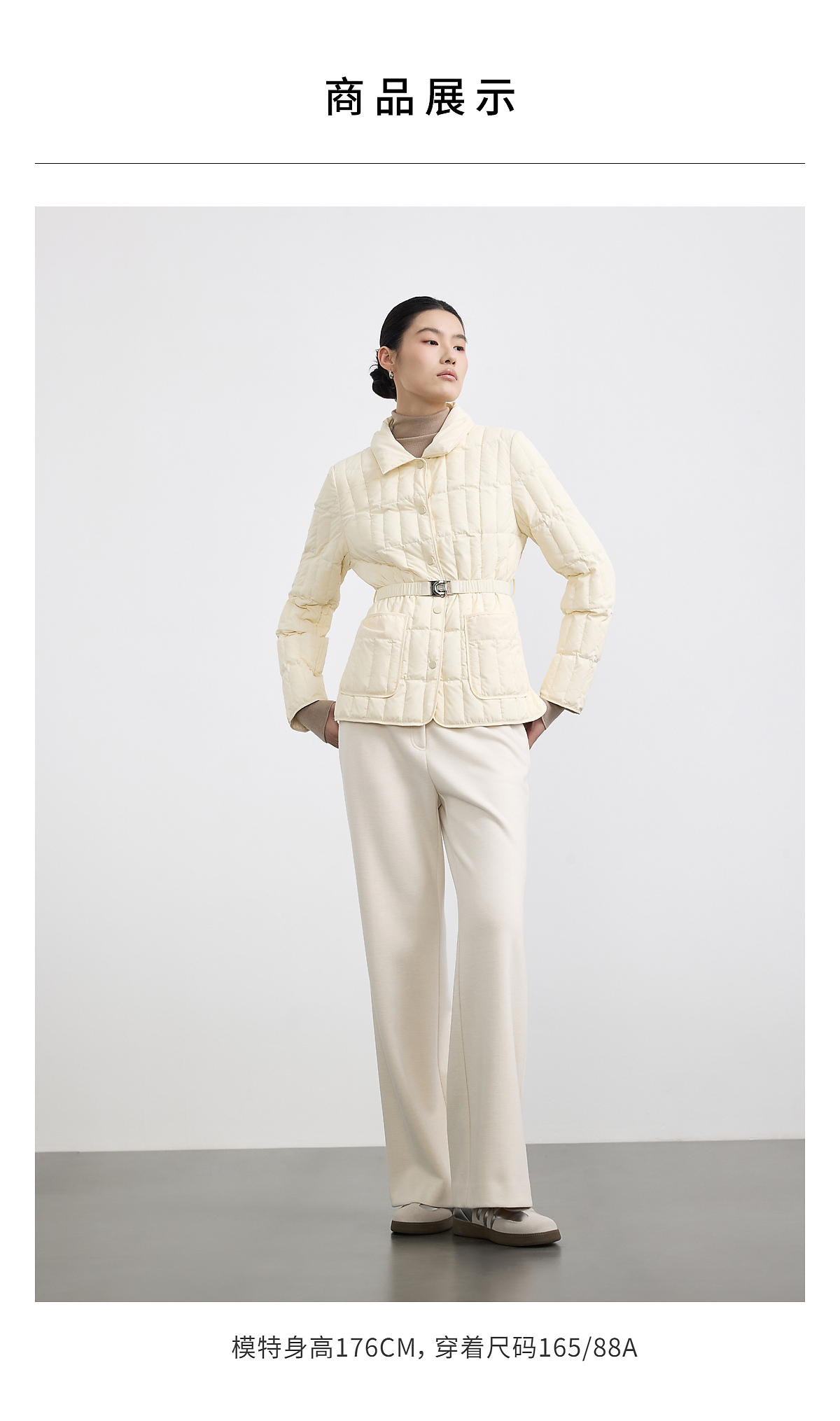PURE TOUCH女装25秋冬新款鹅绒羽绒服短款翻领系带收腰鹅绒服外套