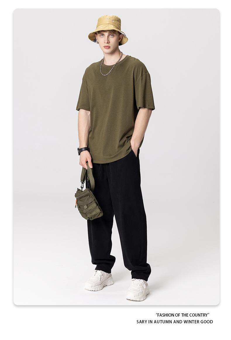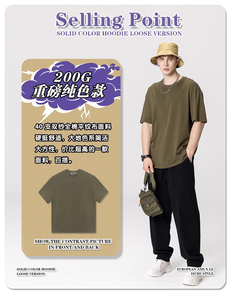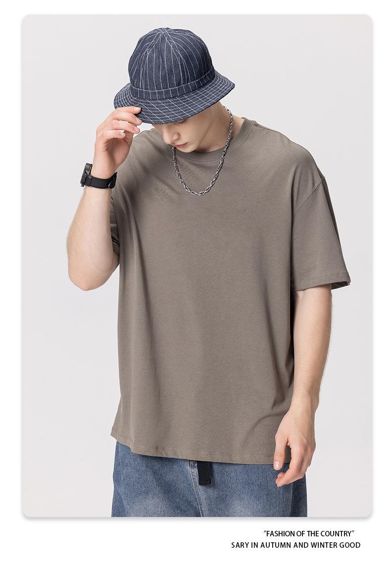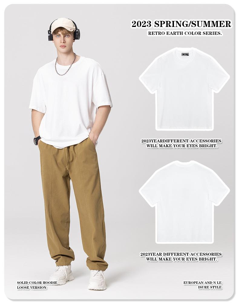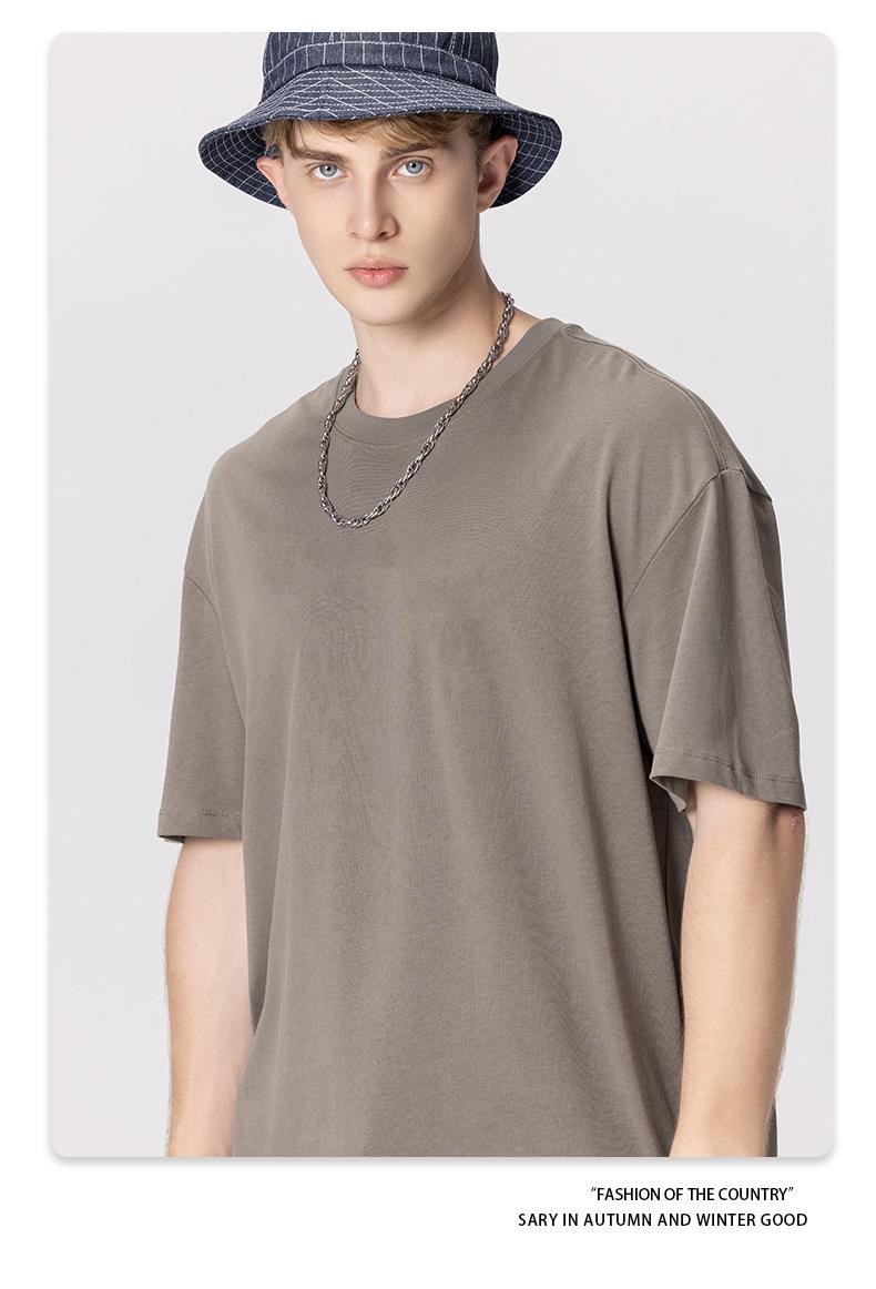 RS男装|2023春夏200g新款可加工纯色短袖欧美大地色宽松潮牌T恤男