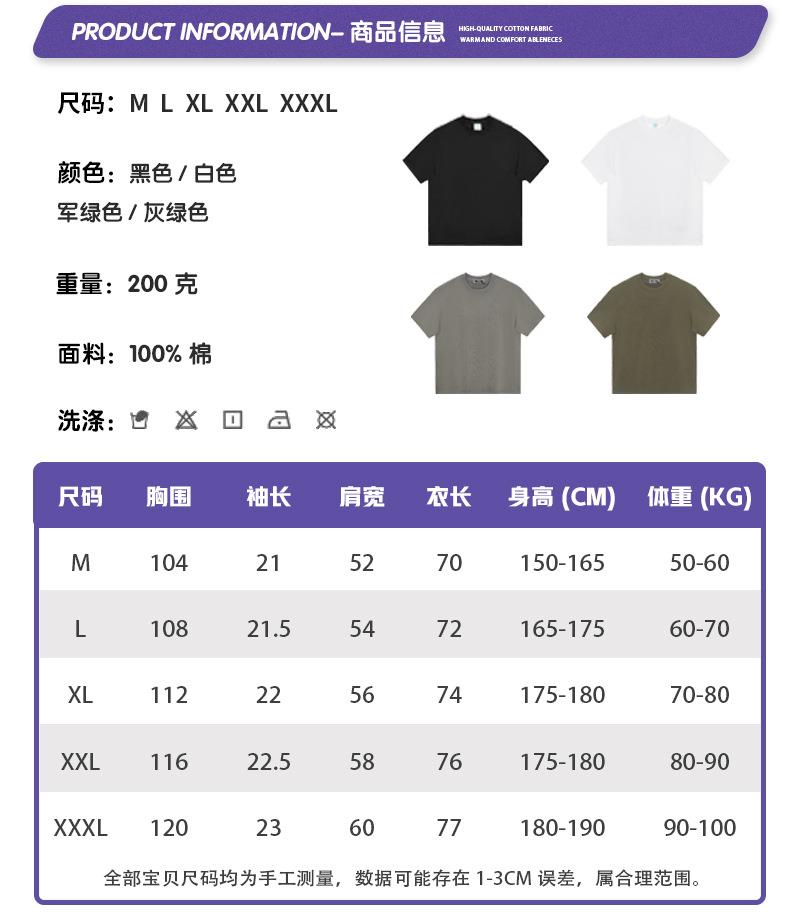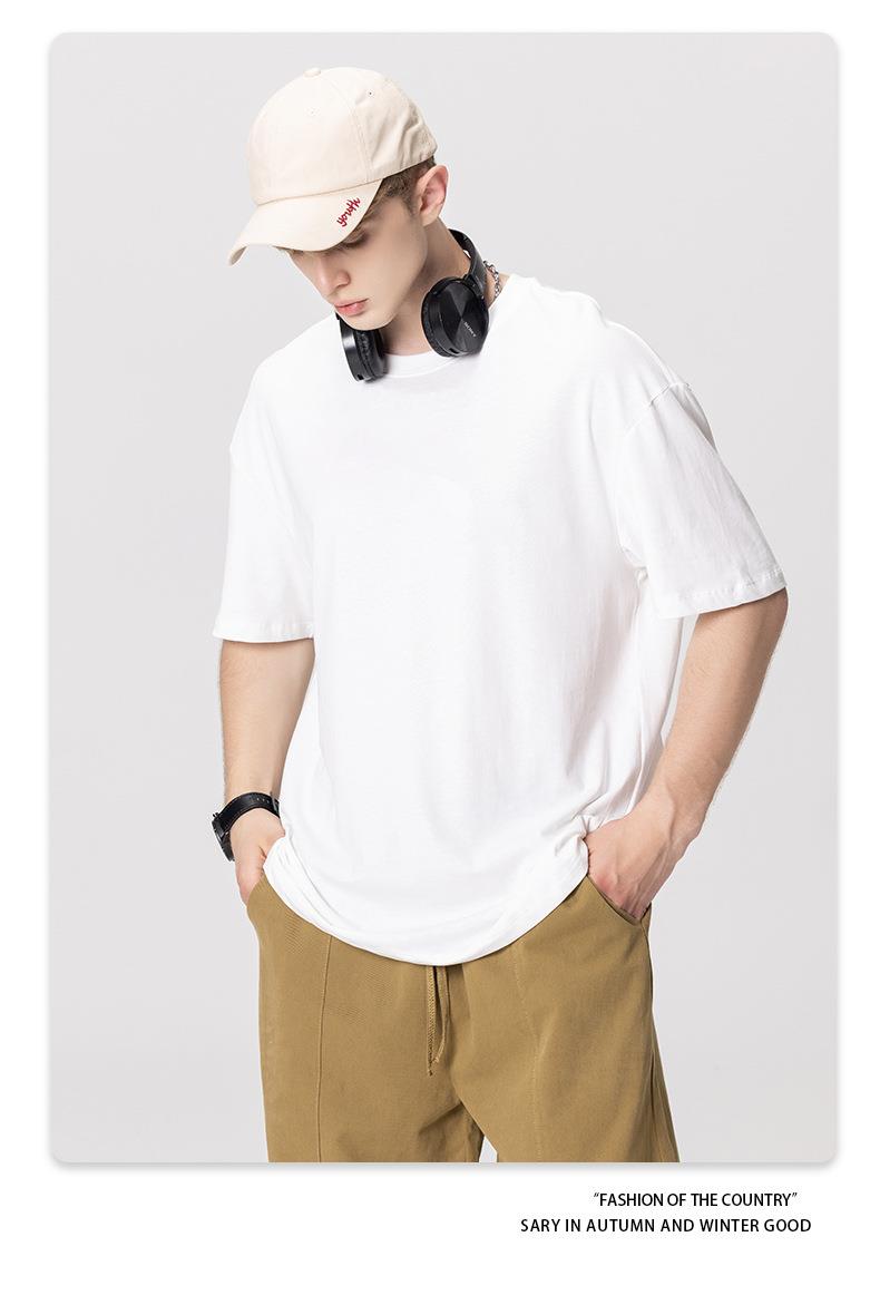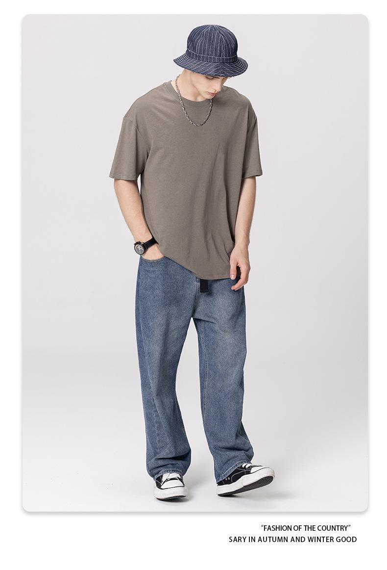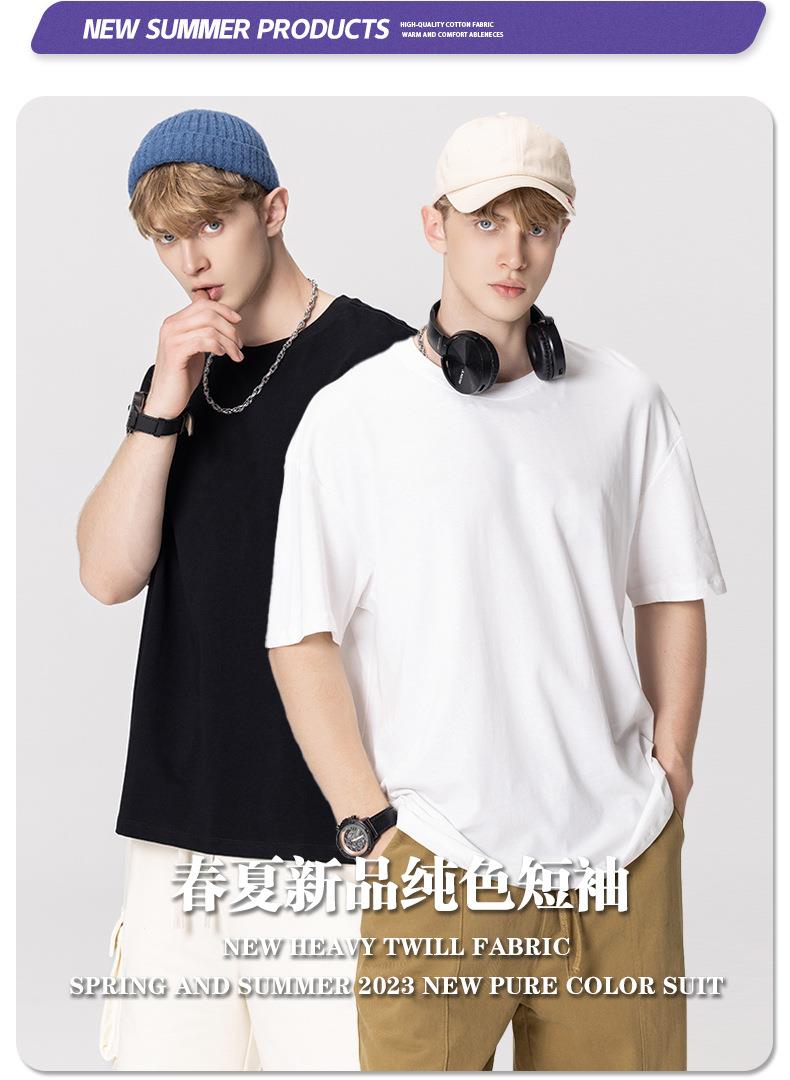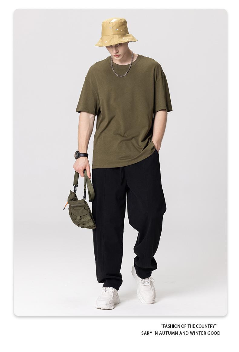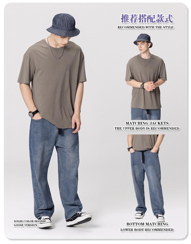 RS男装|2023春夏200g新款可加工纯色短袖欧美大地色宽松潮牌T恤男