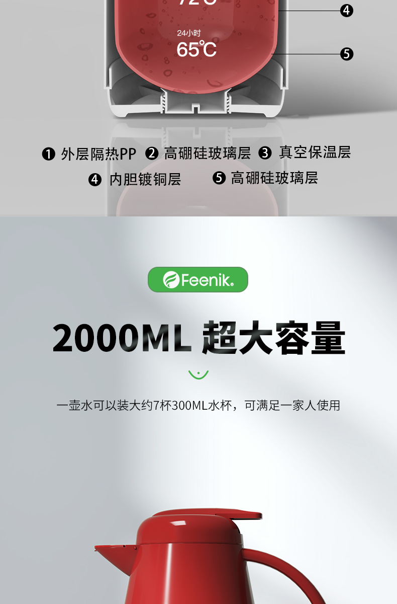 【FEENIK大容量保温水壶】居家日用热水壶便携保温瓶