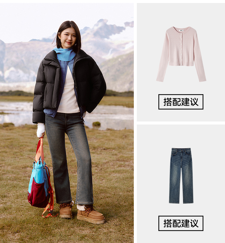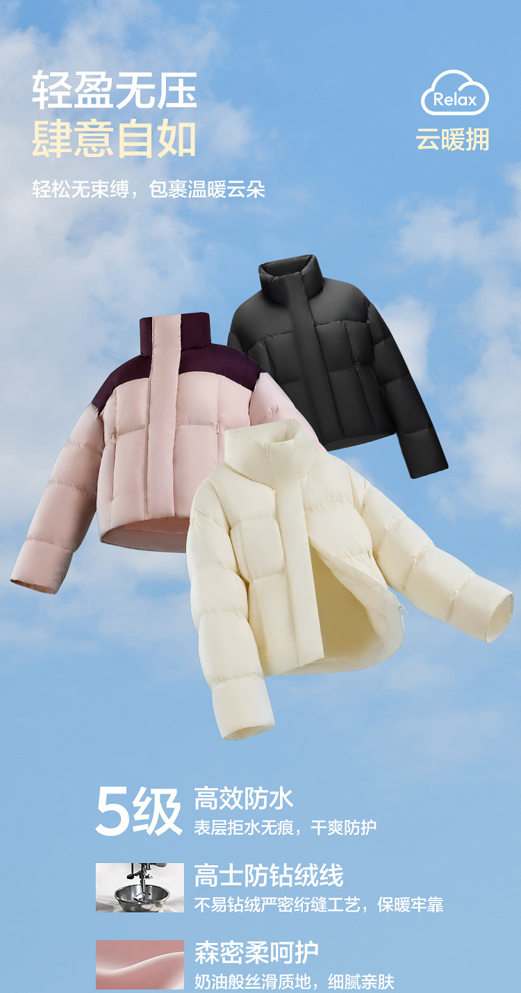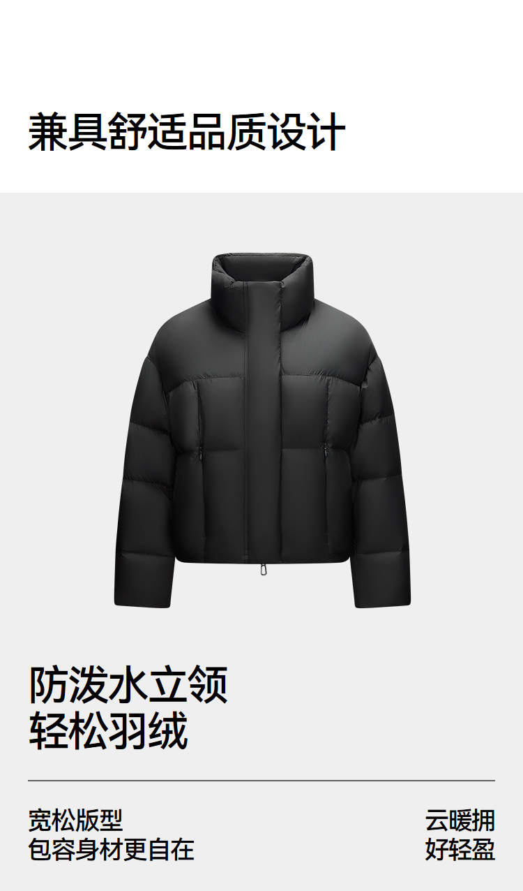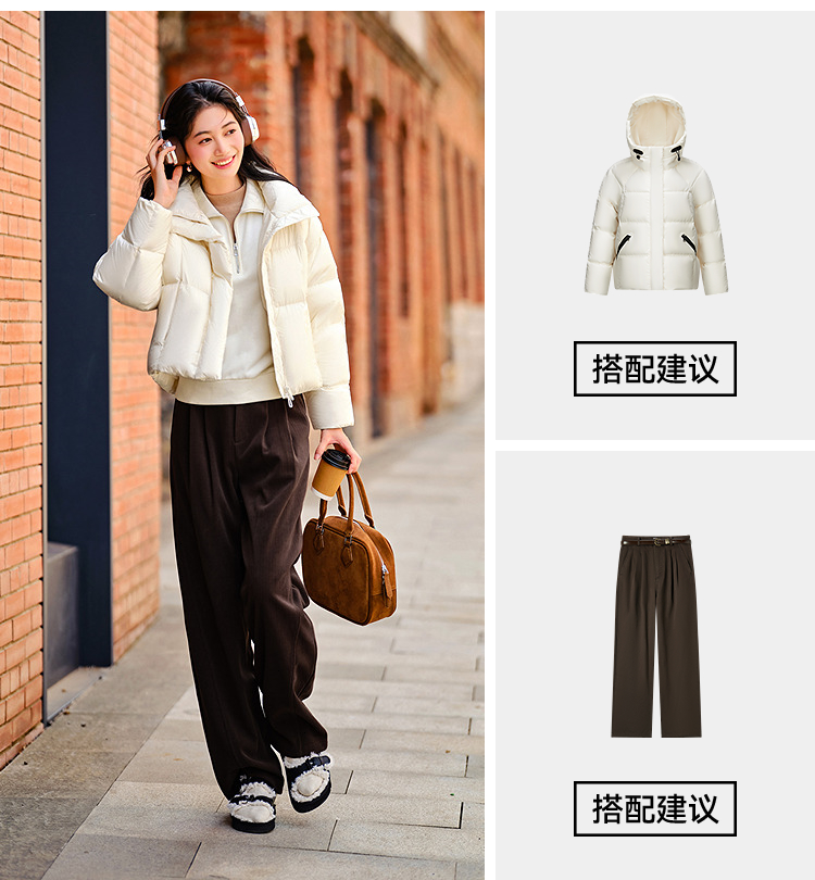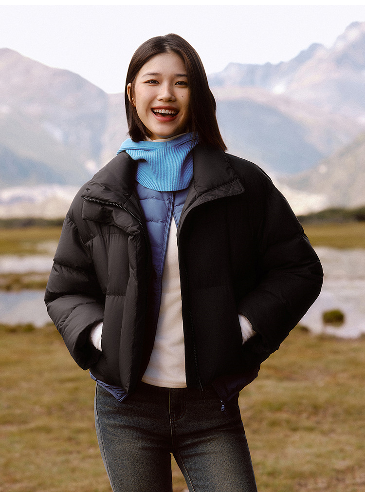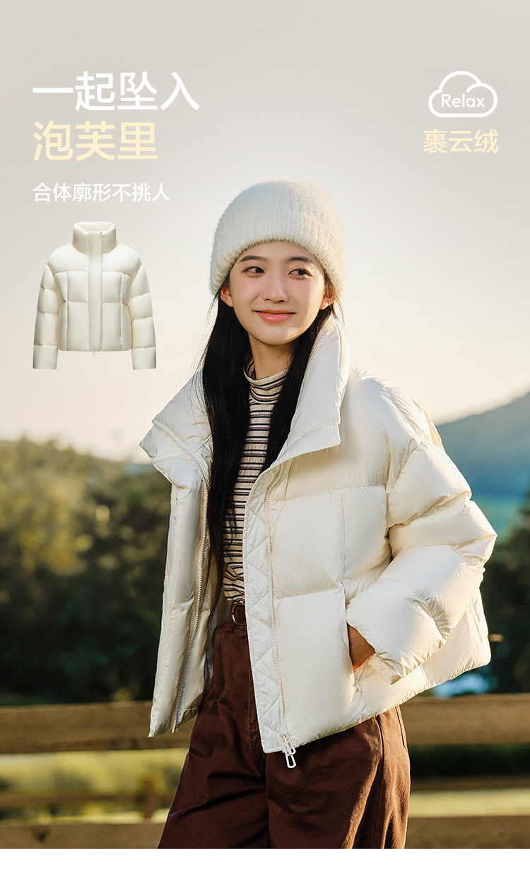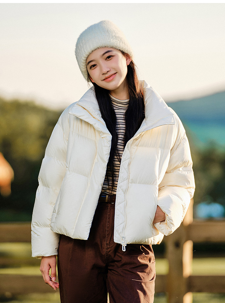 轻松|森马羽绒服女冬90绒子防泼水宽松立领简约时尚小个子面包服