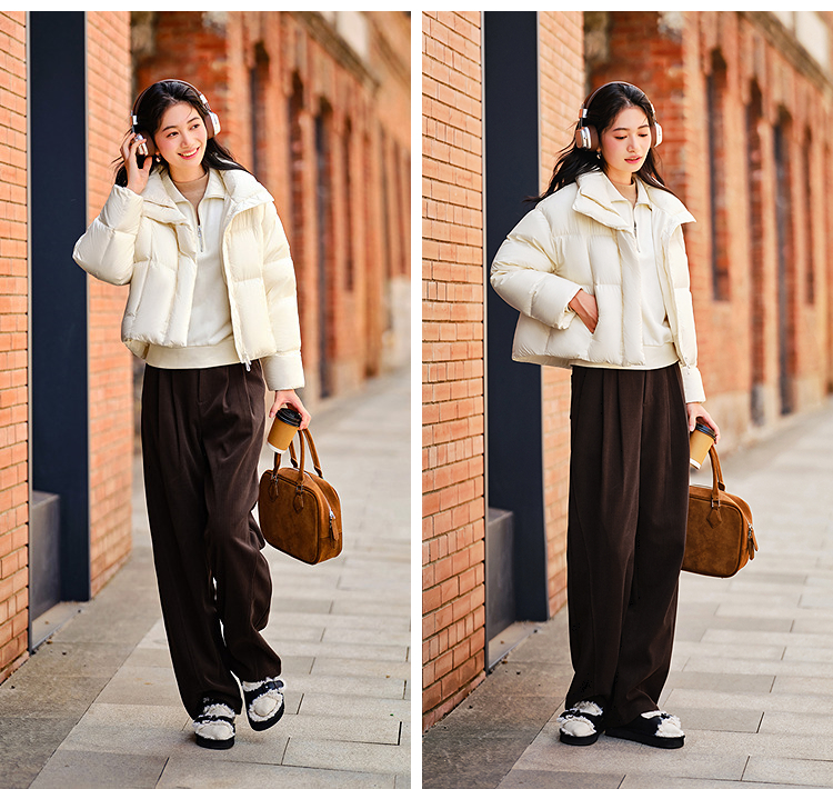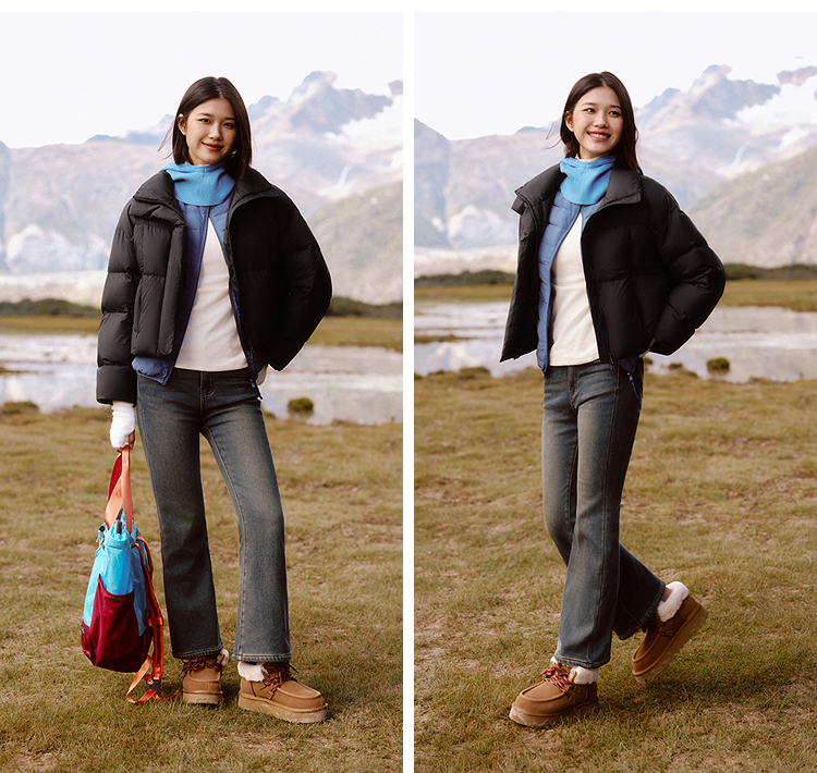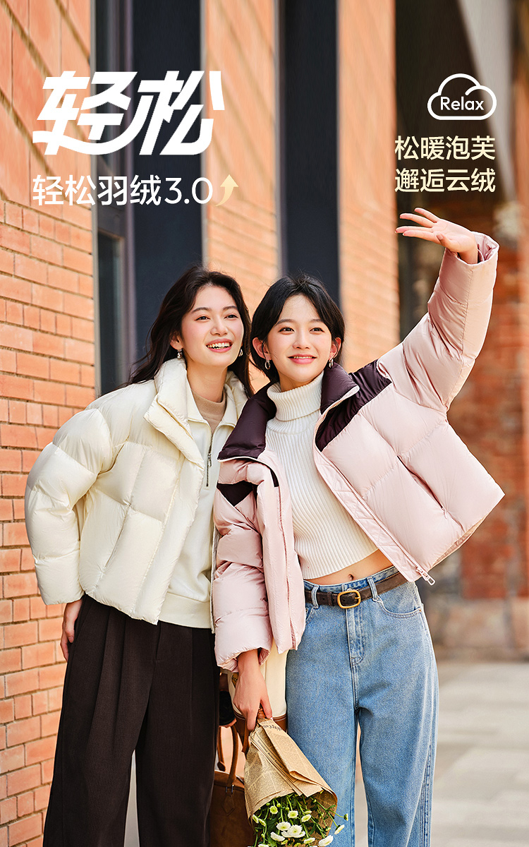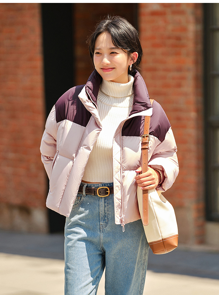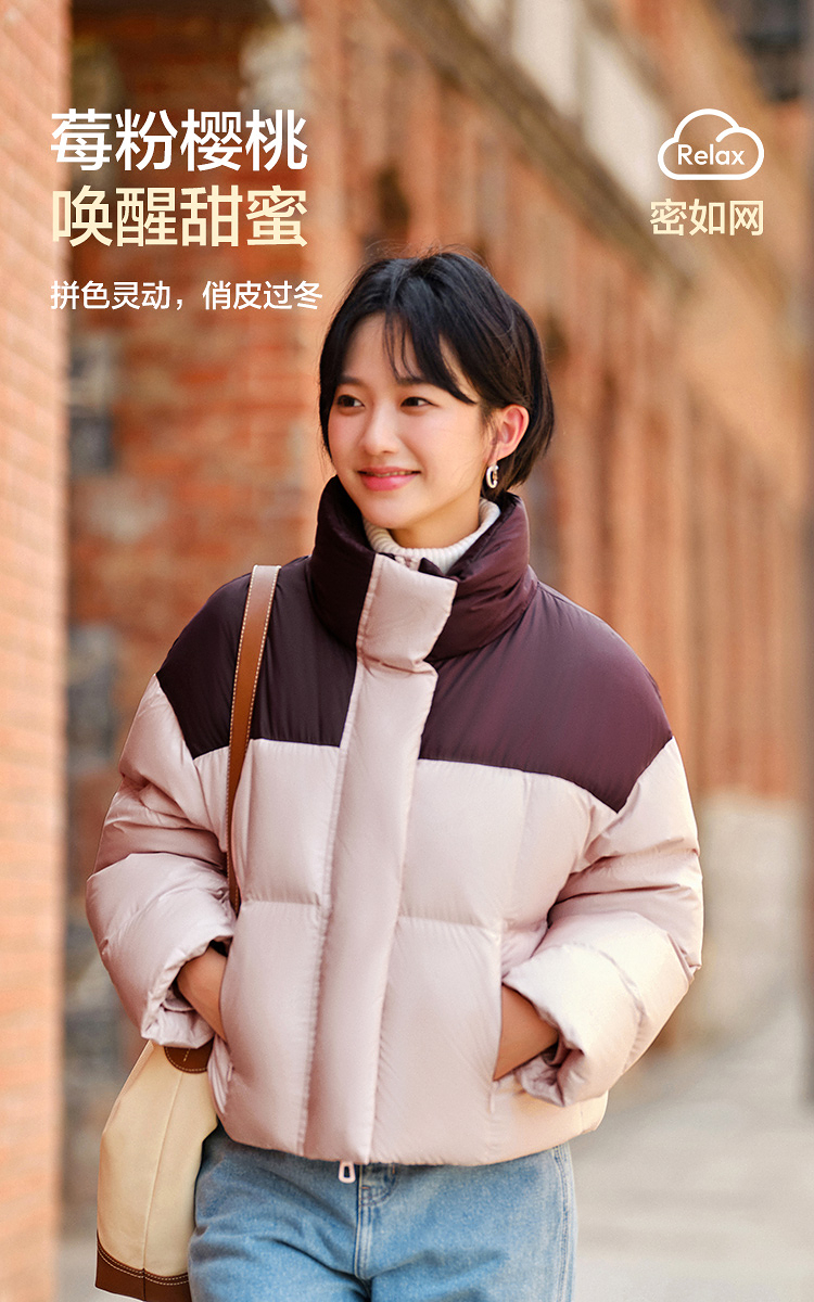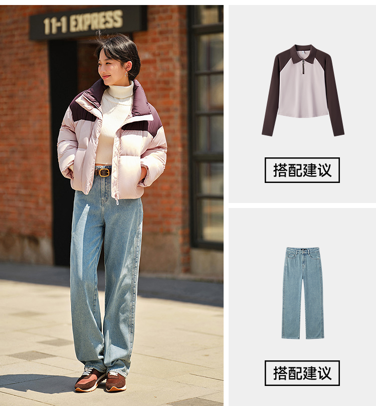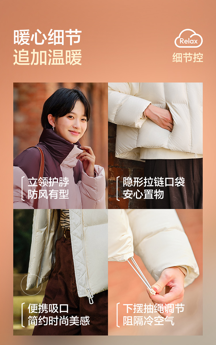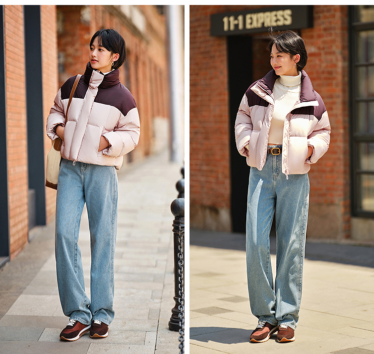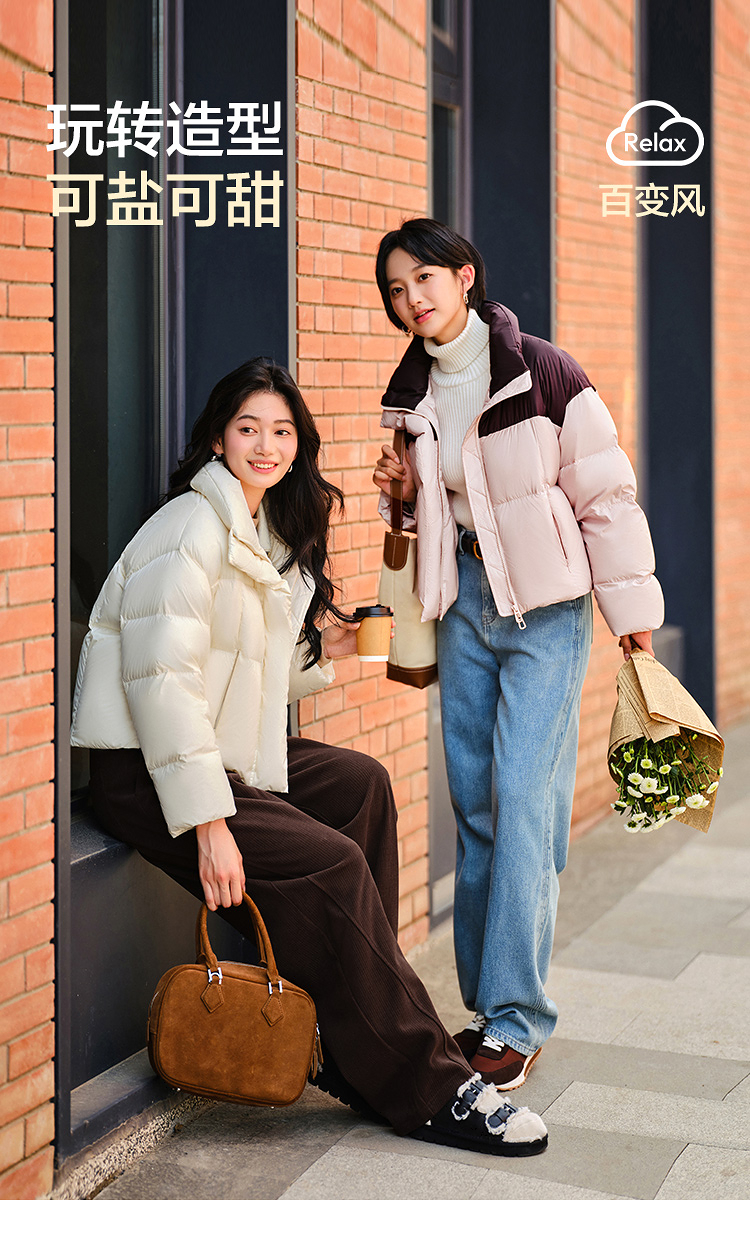 轻松|森马羽绒服女冬90绒子防泼水宽松立领简约时尚小个子面包服