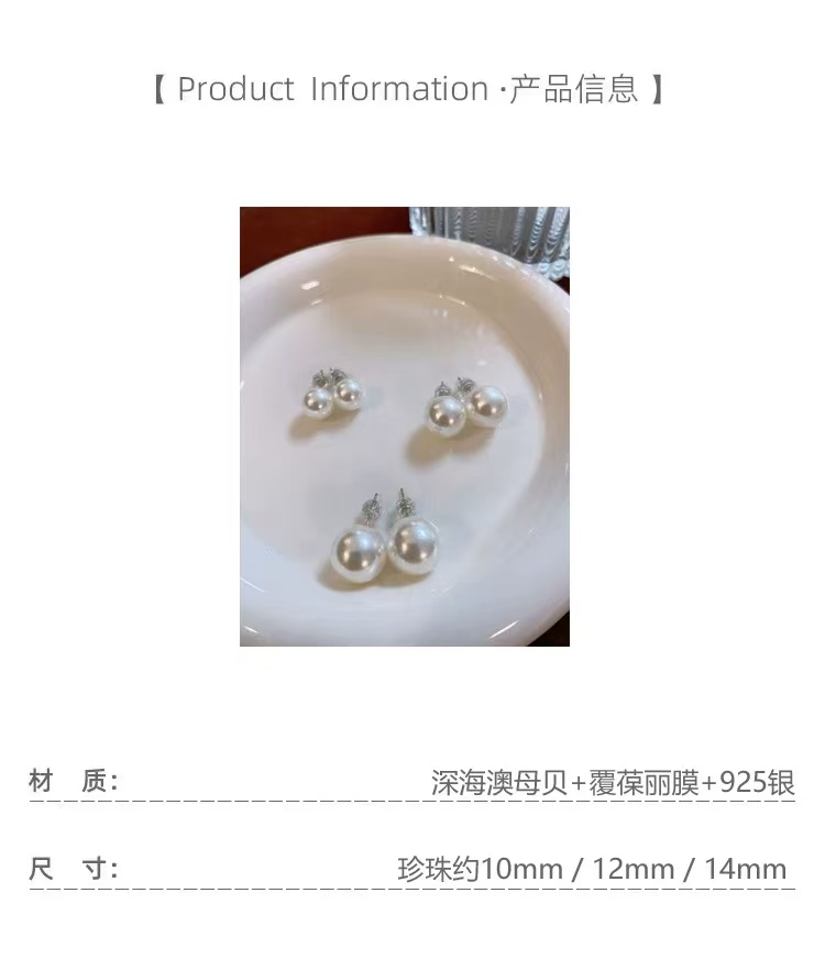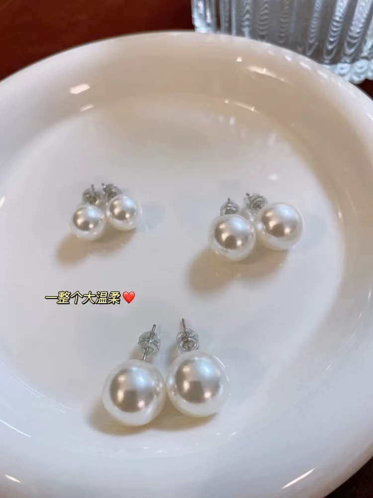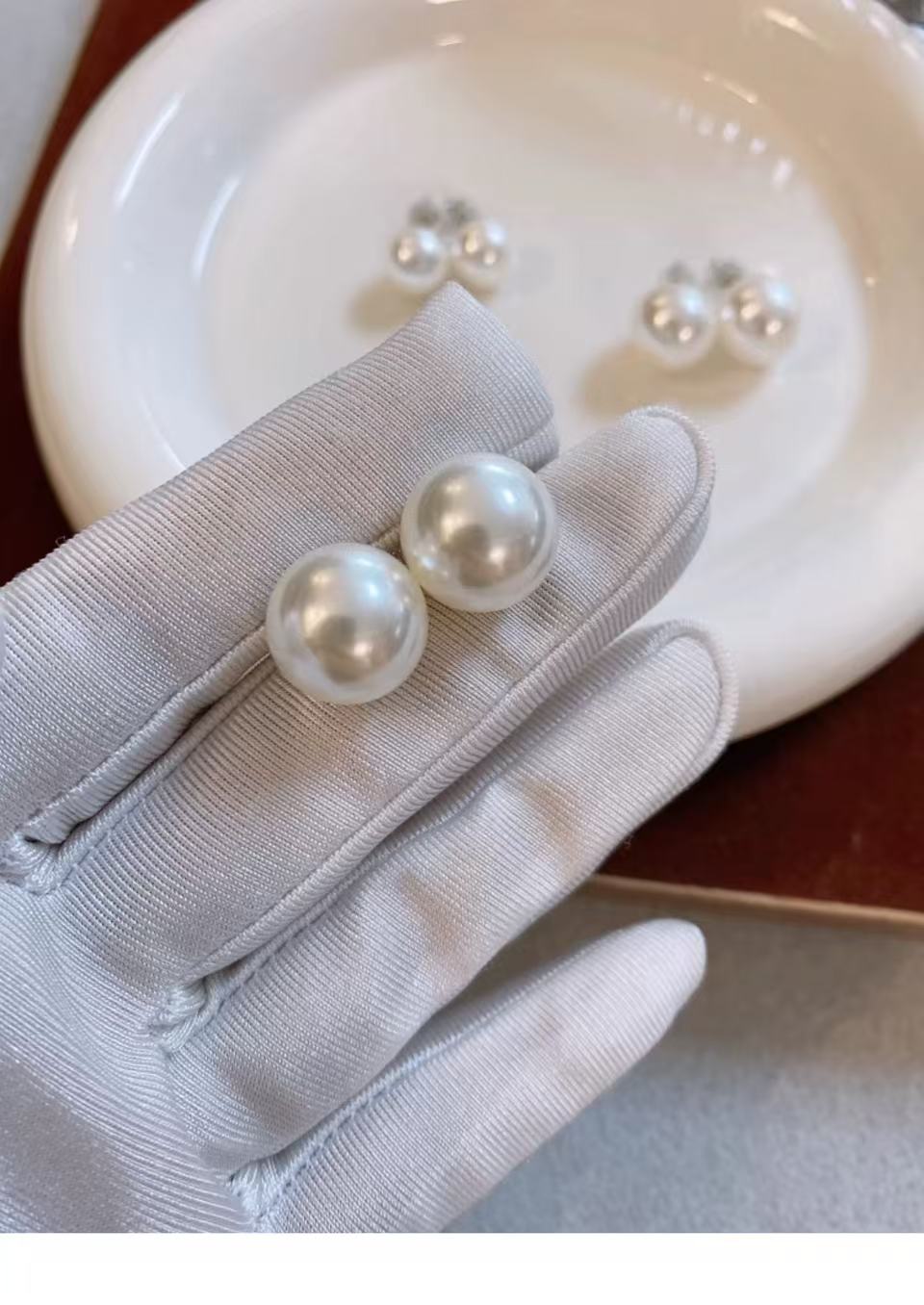 925银正圆强光澳白色珍珠耳钉女ins小众网红法式复古港风名媛耳环