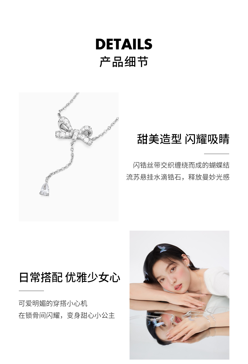 卡蒂罗蝴蝶结流苏项链女925银轻奢小众2023年新款小众设计锁骨链
