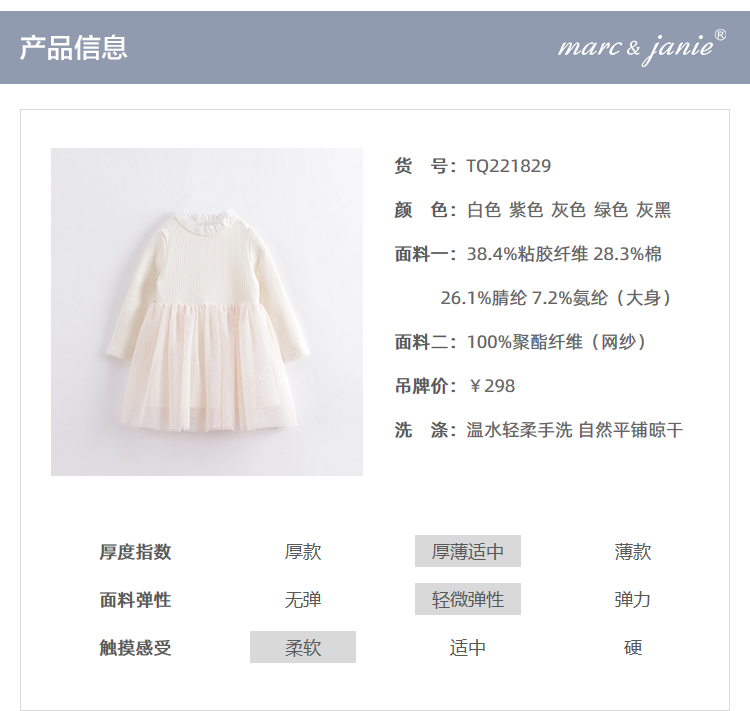 【德绒发热】马克珍妮秋装新款 女童网纱连衣裙221829