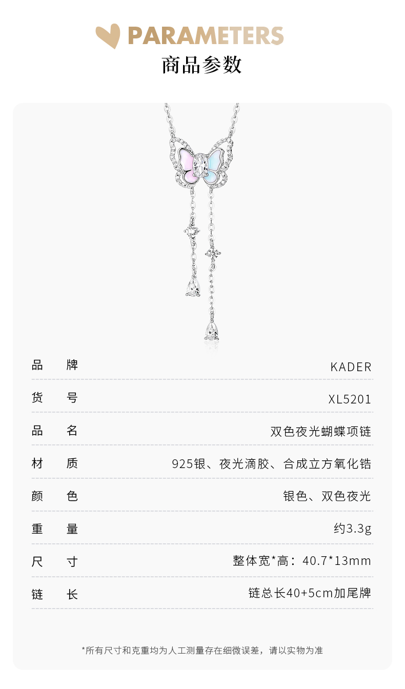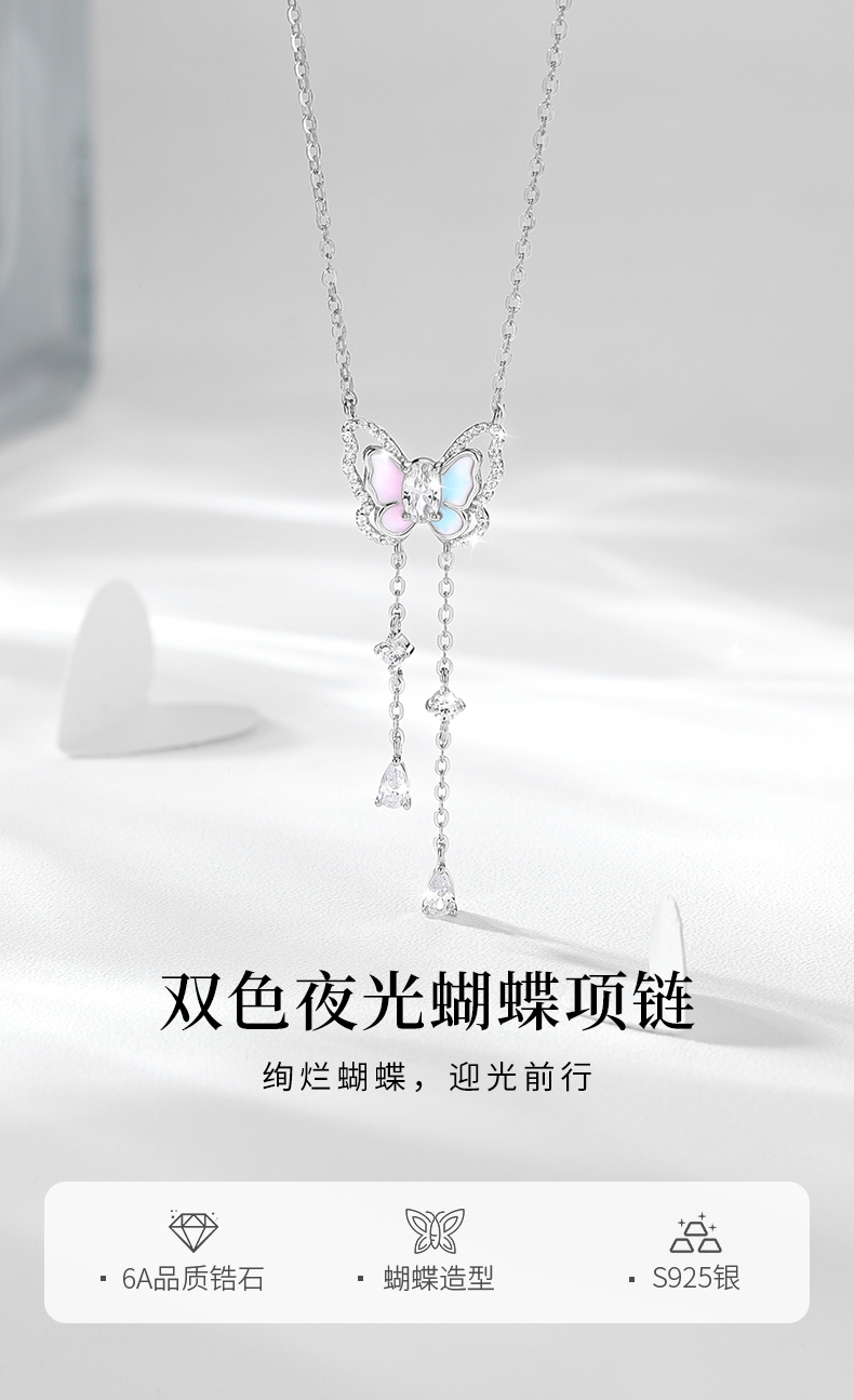 【夜光 双色】卡蒂罗/KADER 双子星夜光蝴蝶 接住招财的蝴蝶玄学!会发光锁骨链闪闪蝶舞原创设计流苏