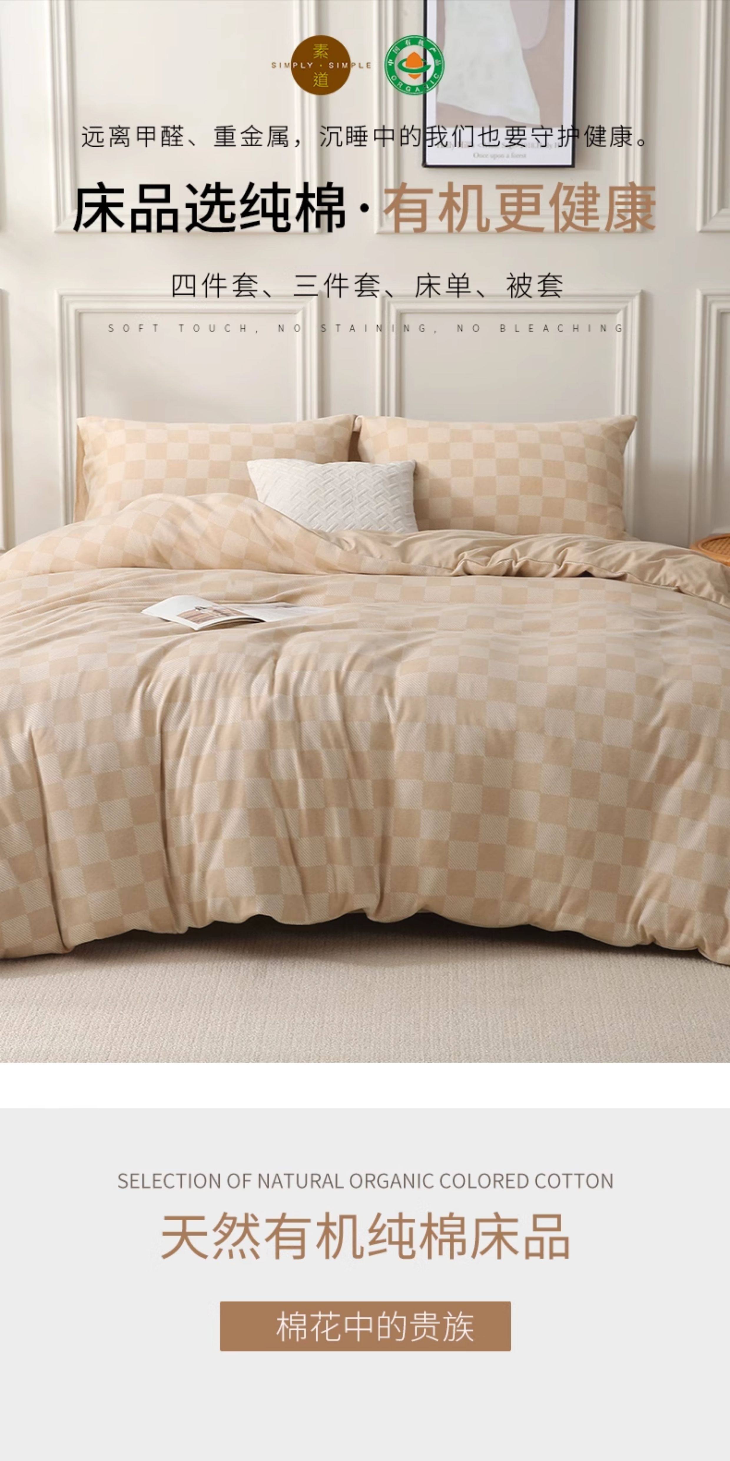 【针织,梭织床品四件套/被套、床单、枕套】100%棉素道有机彩棉-纯天然,无漂染,无荧光,亲肤无刺激更舒适(基地直发-申通包邮),来自敦煌,品牌:素道【合作生产,公平贸易】
