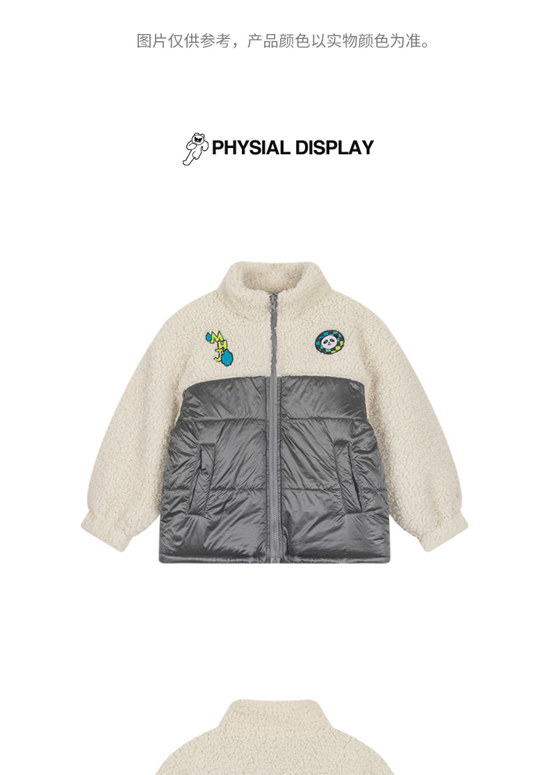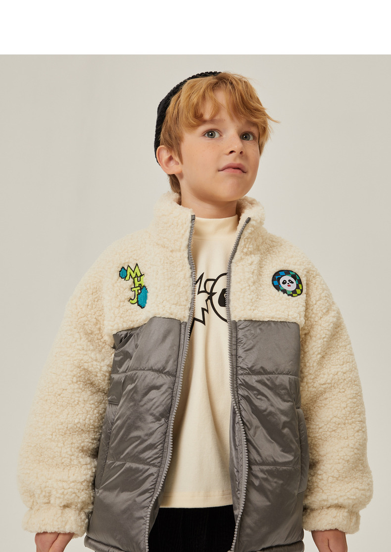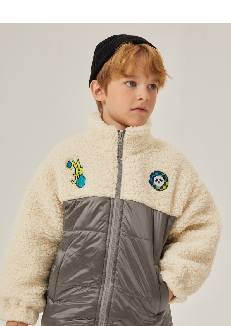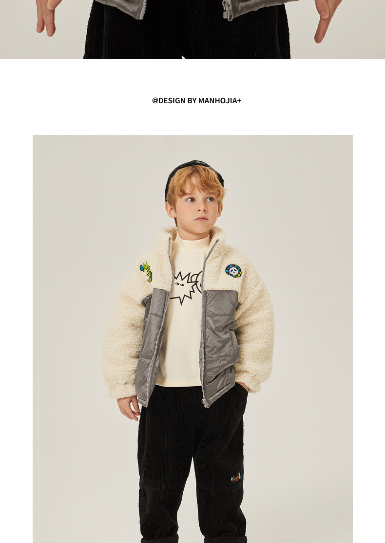 马拉丁潮牌漫画家儿童棉袄冬羊羔绒拼接街头宽松棉夹克潮