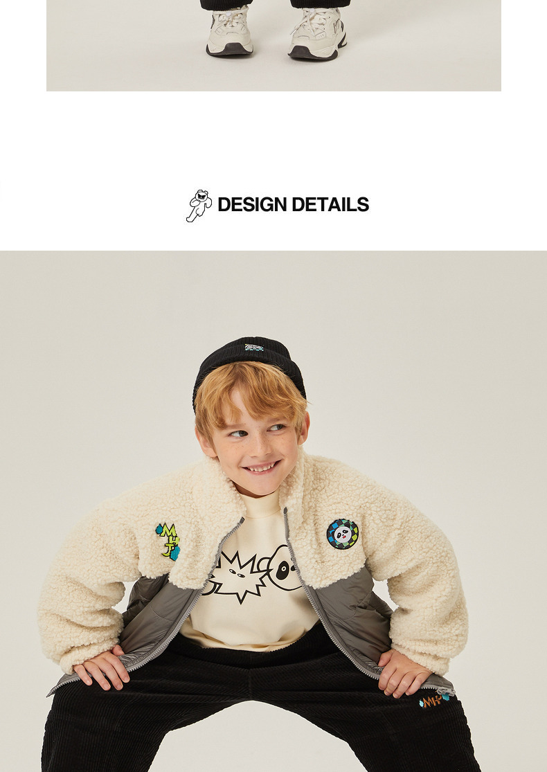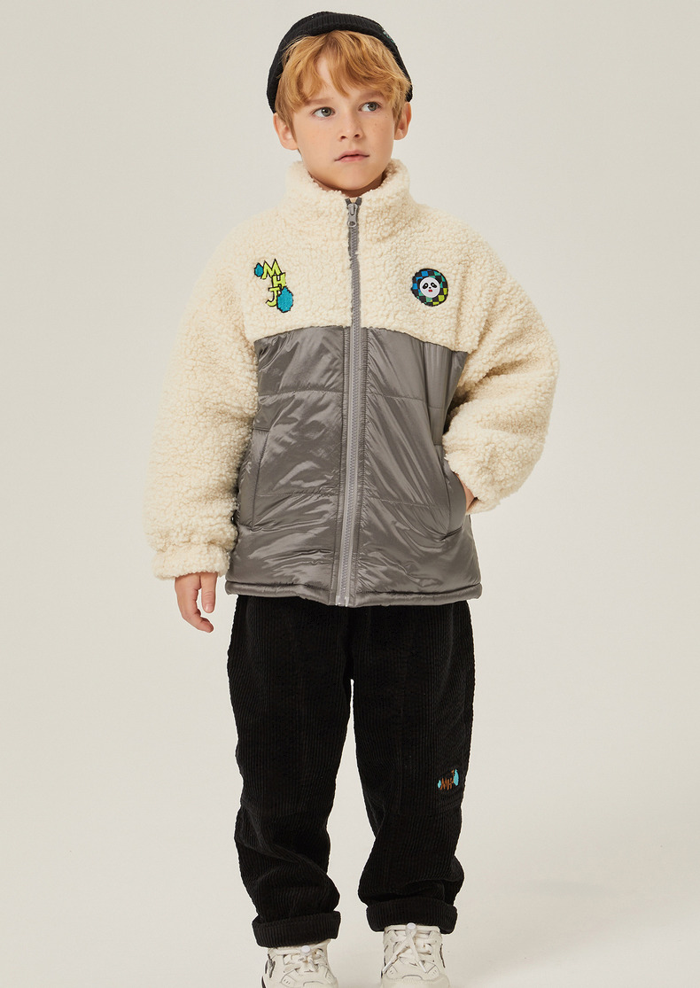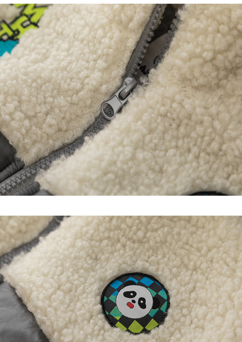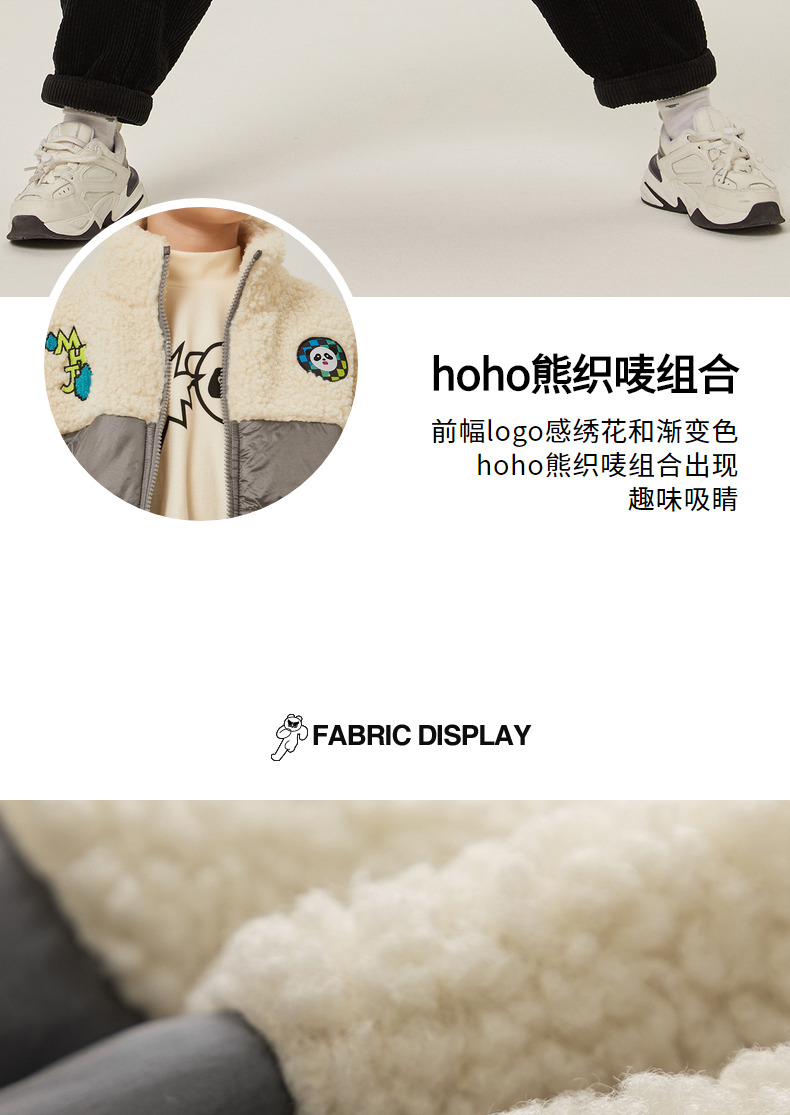 马拉丁潮牌漫画家儿童棉袄冬羊羔绒拼接街头宽松棉夹克潮