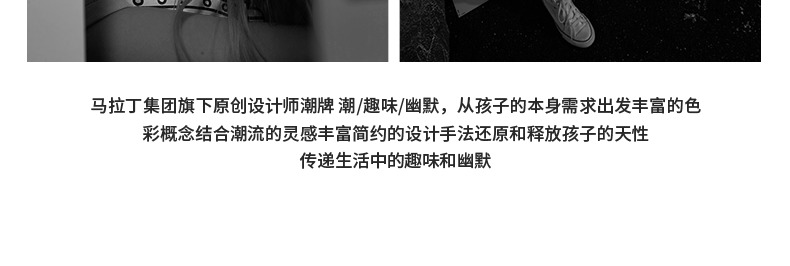 马拉丁旗下的城市户外潮童品牌,为3-12岁的孩子提供实用与细节设计的时尚度童装,打造现代简潮和城市户外感的着装,man游童年的冒险jia!