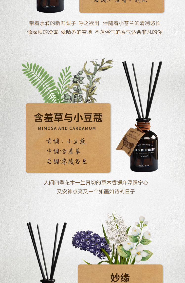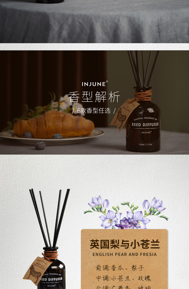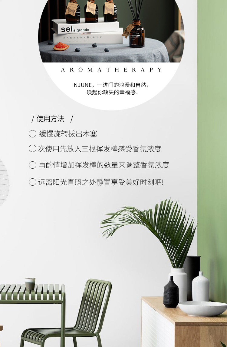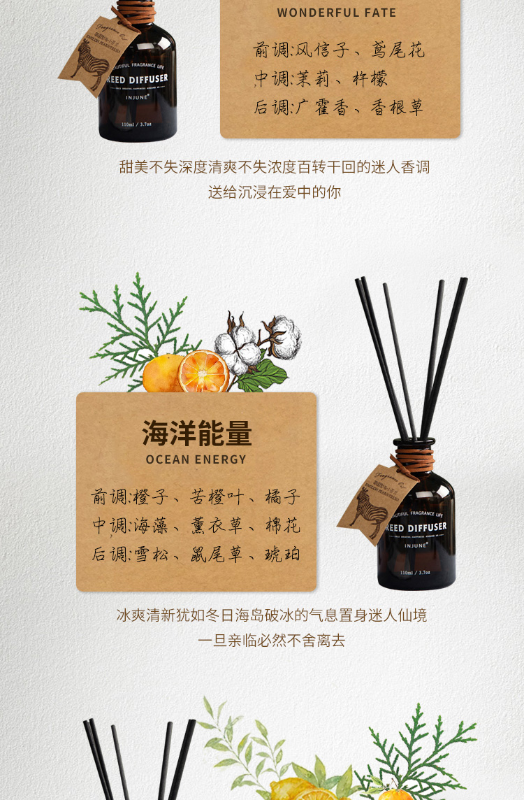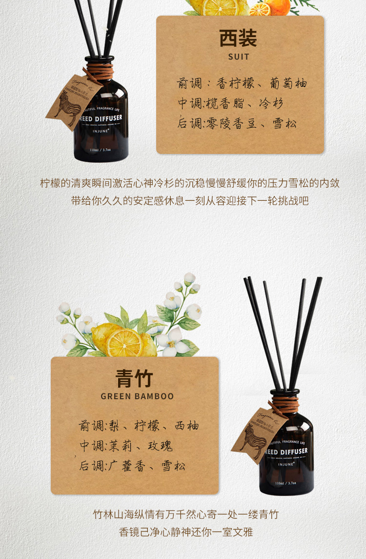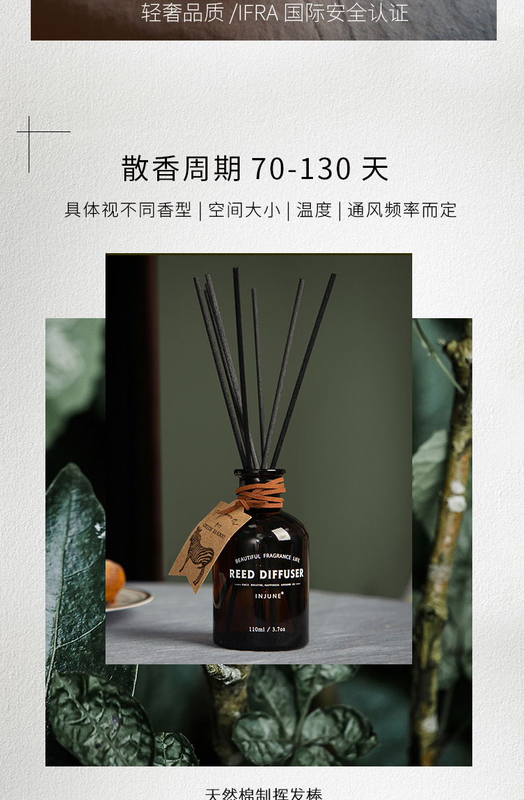 INJUNE无火藤条香薰精油植物香氛室内家用持久淡香房间空气清新