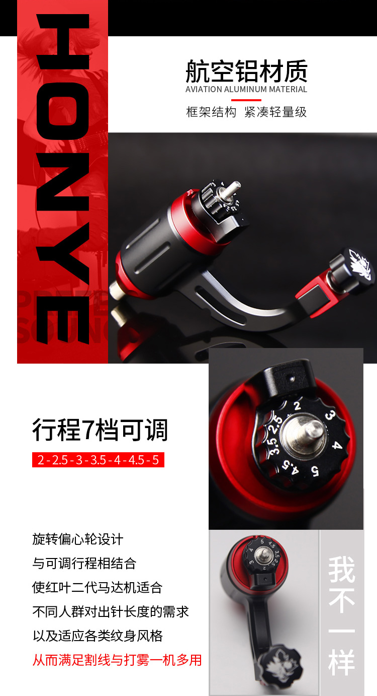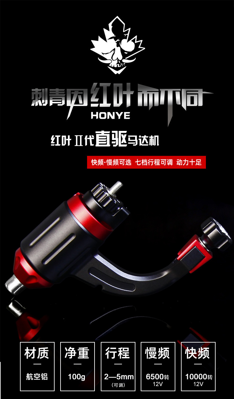 新款红叶马达纹身机 直驱可调行程空心杯马达机惊蛰刺青器材