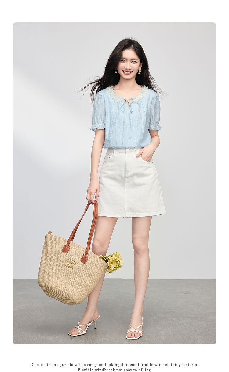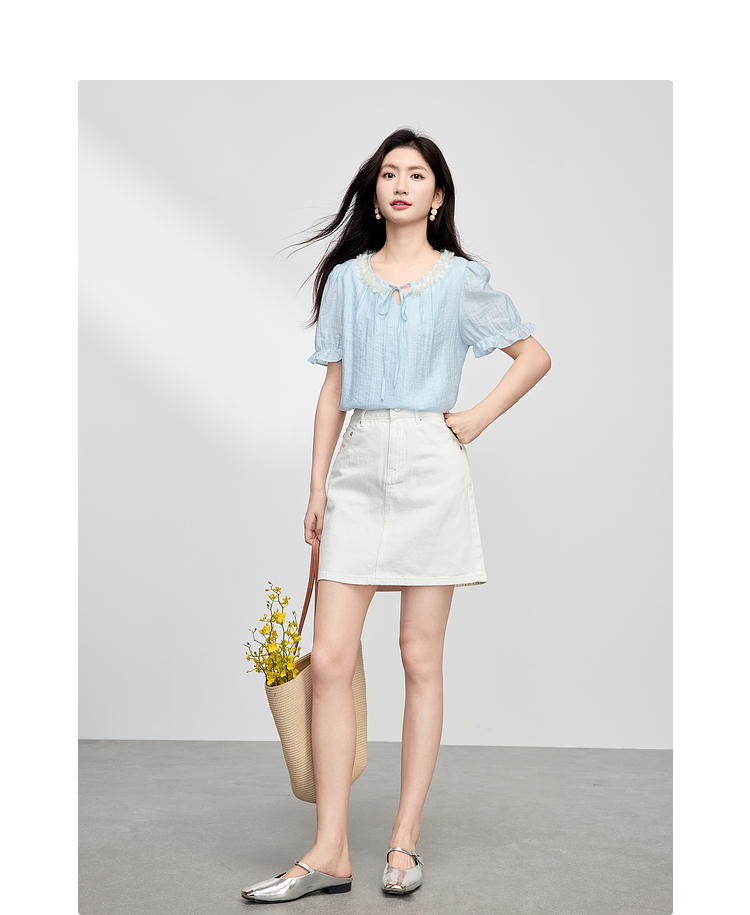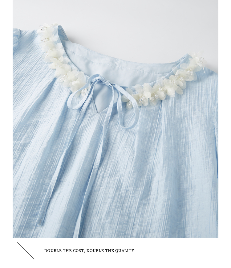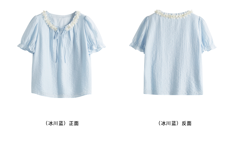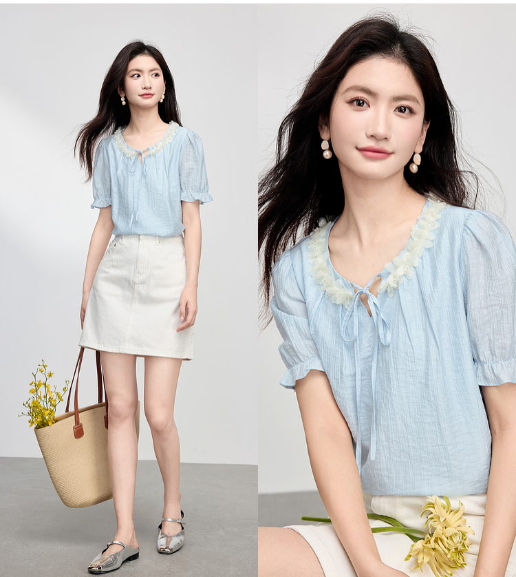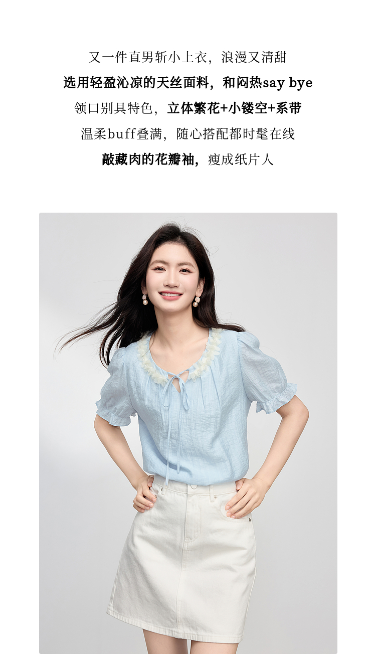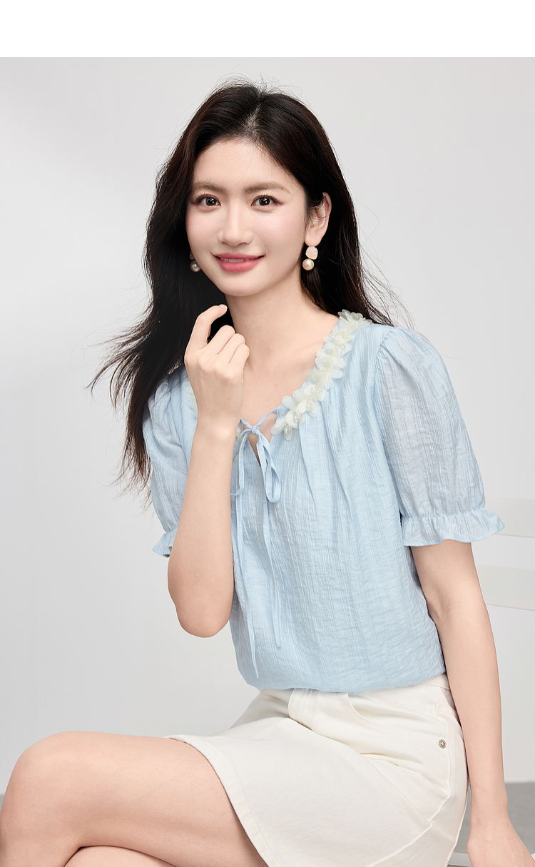 【专属特价】熙世界南法假日立体花边天丝衬衫女夏季2025年新款泡泡袖小衫上衣