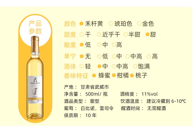 莫高 长相守冰酒 冰白葡萄酒甜酒 陈酿2年 500ml 单盒装