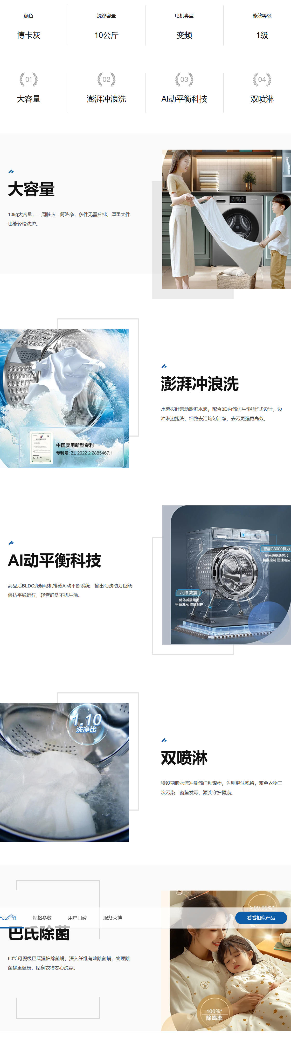 海尔 洗衣机 XQG100-608H 10KG 滚筒 变频 一级能效 博卡灰