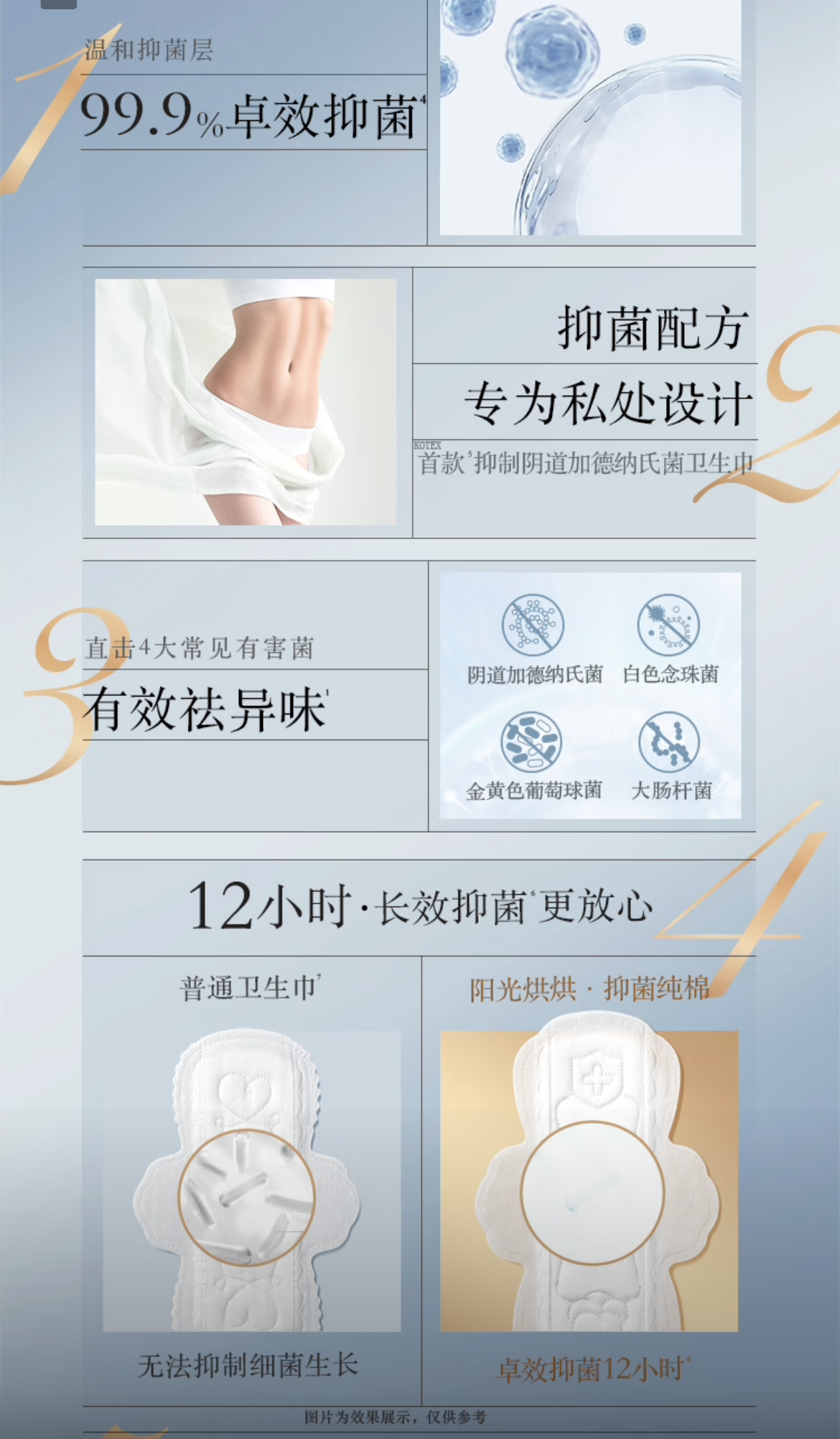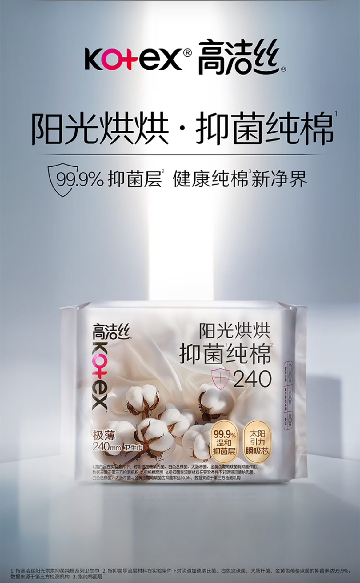 高洁丝 阳光烘烘抑菌纯棉卫生巾280mm*12p