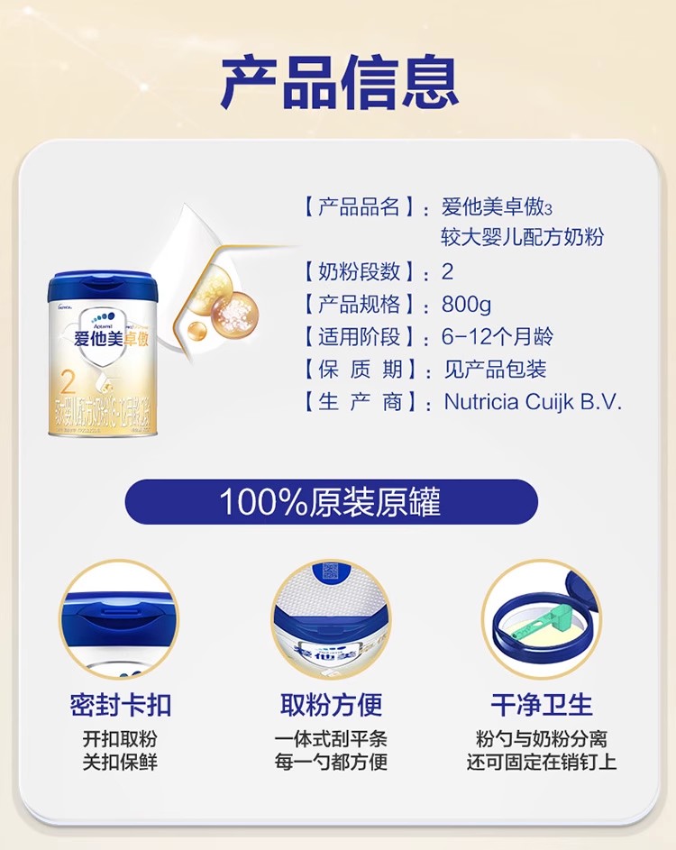 爱他美卓傲婴儿配方奶粉2段800g/ATM-614004