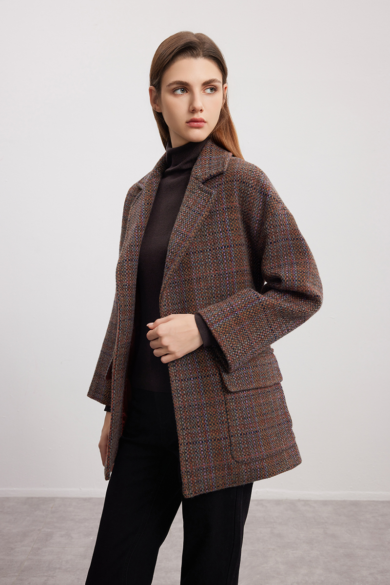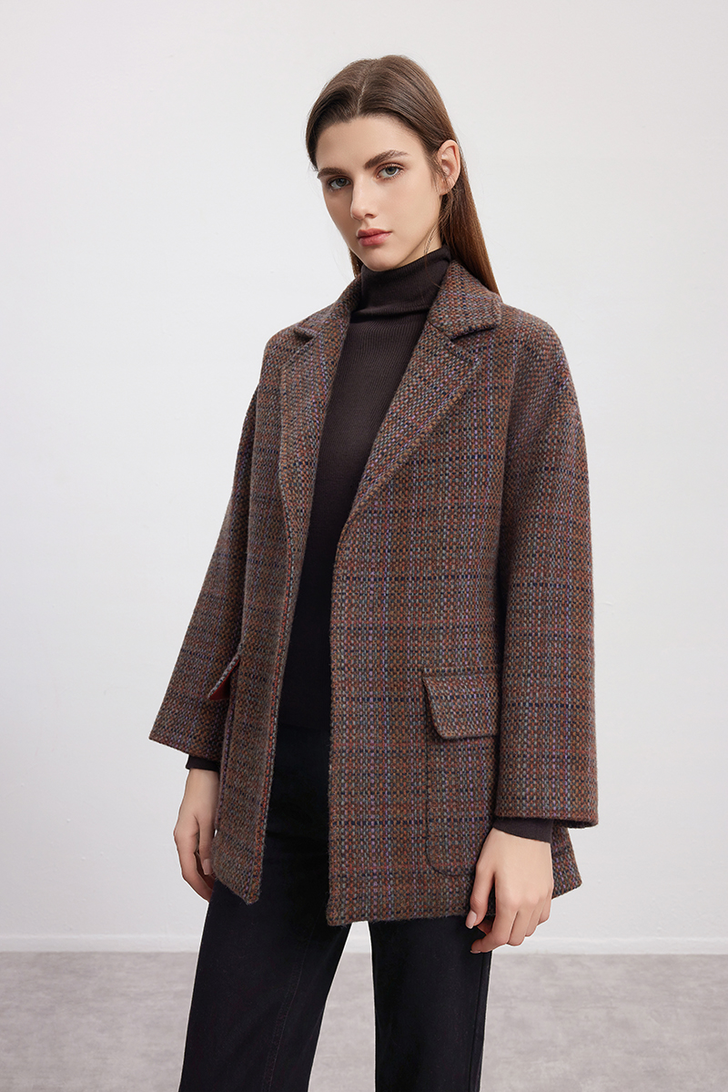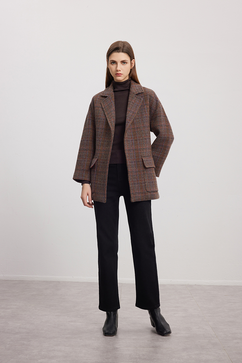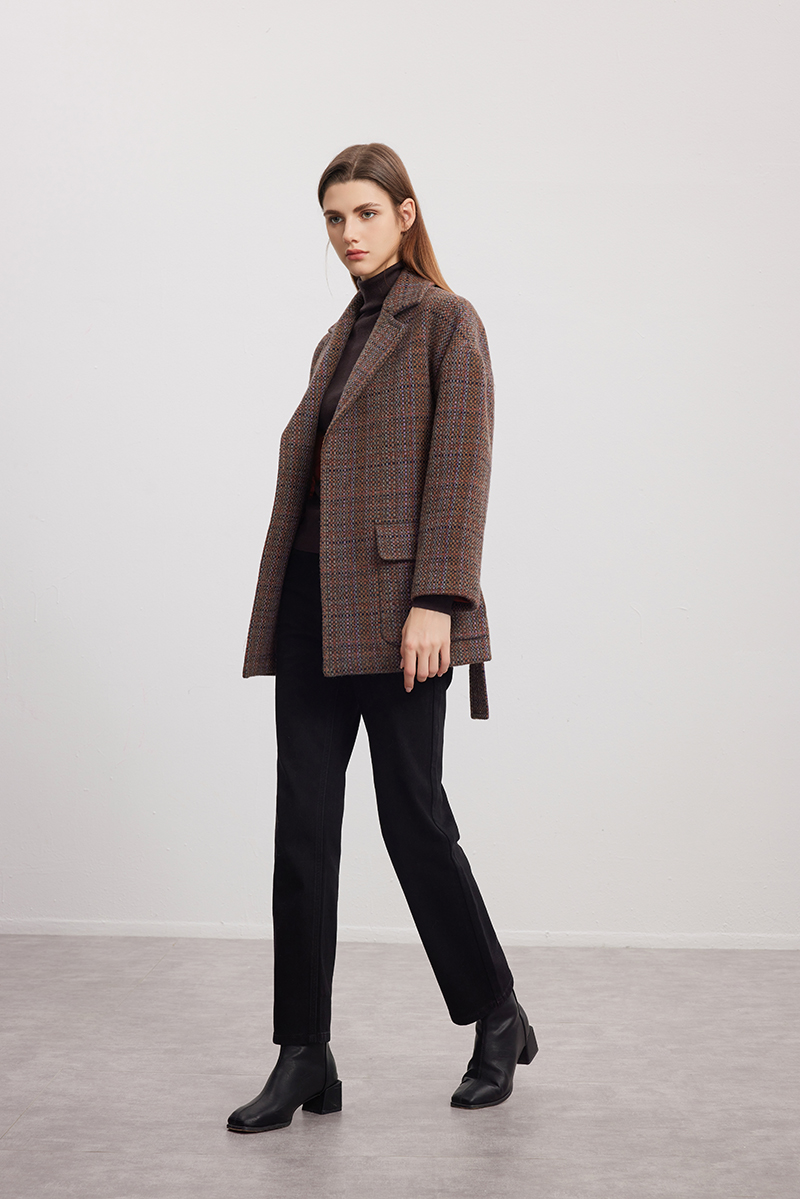 【系带收腰羊毛羊驼大衣】24年秋冬新品女士经典格子毛呢保暖外套
