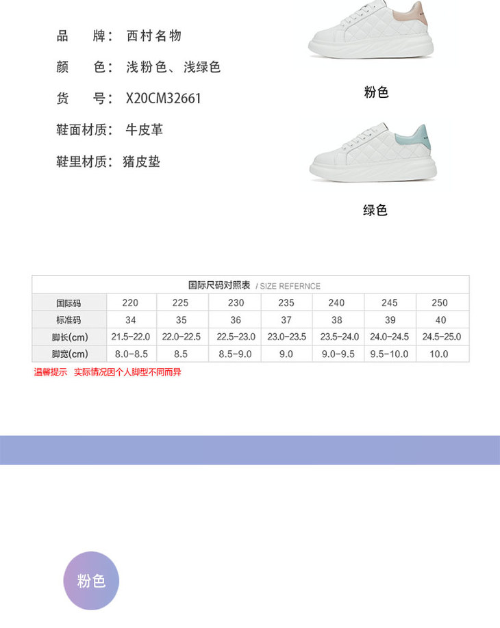 西村名物2020秋冬新款小白鞋麦昆鞋厚底X20CM32661
