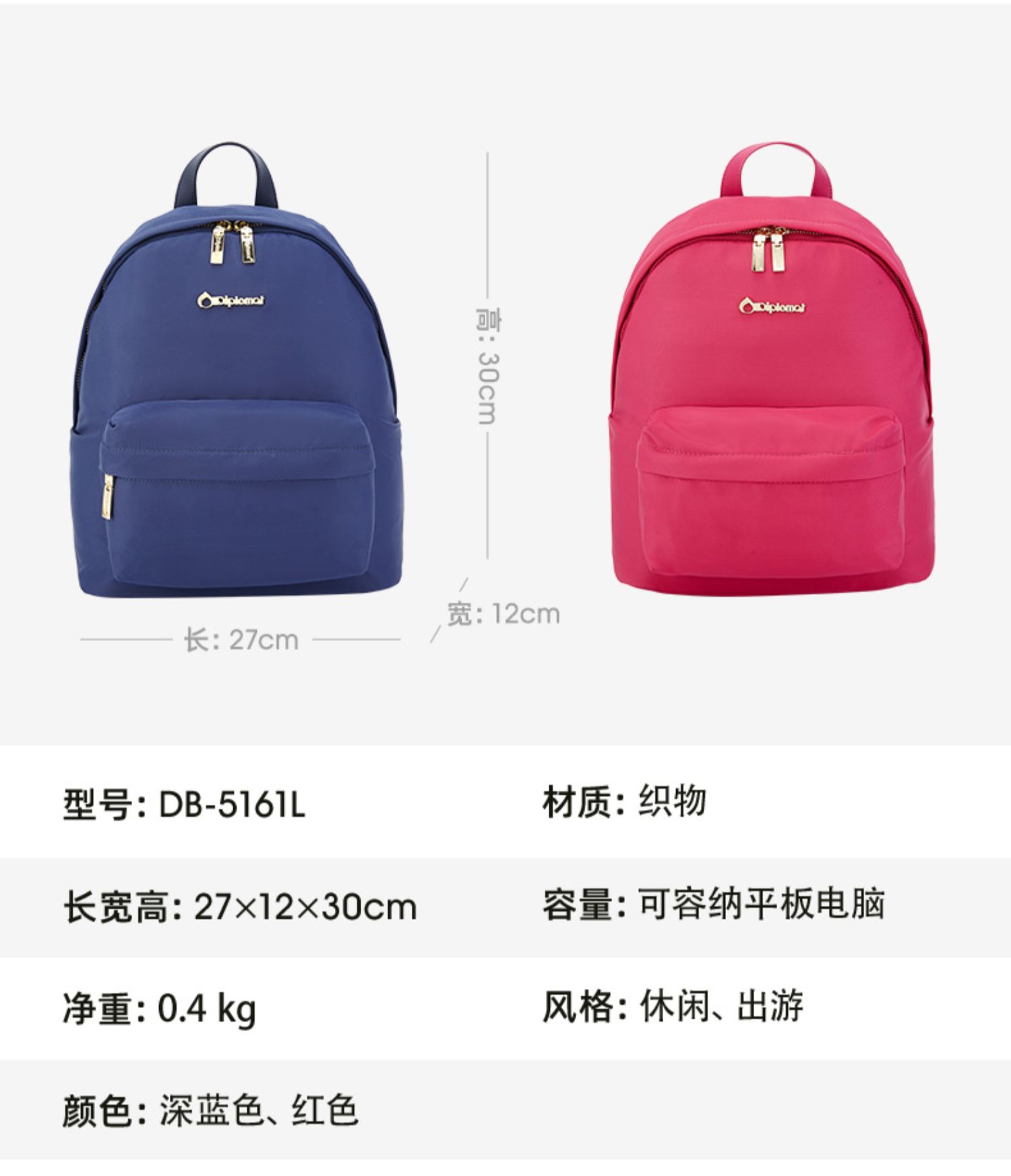 diplomat外交官双肩包女书包初中高中大学生韩版潮流背包DB-5161L