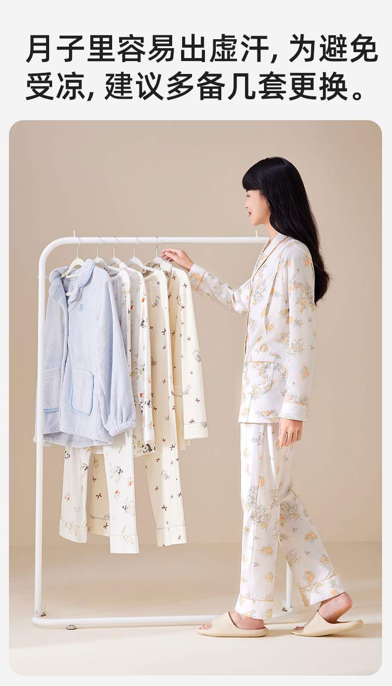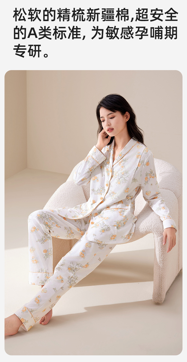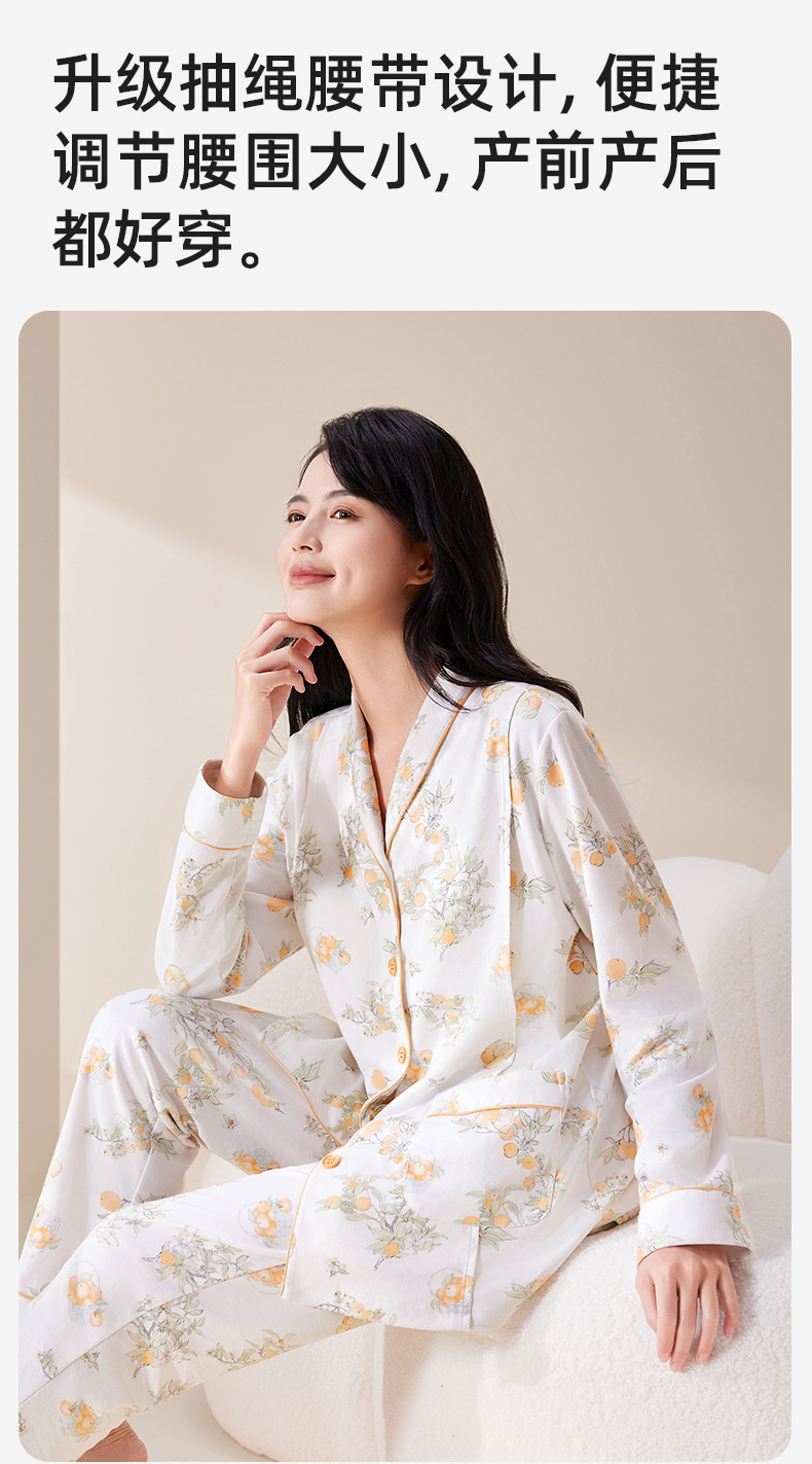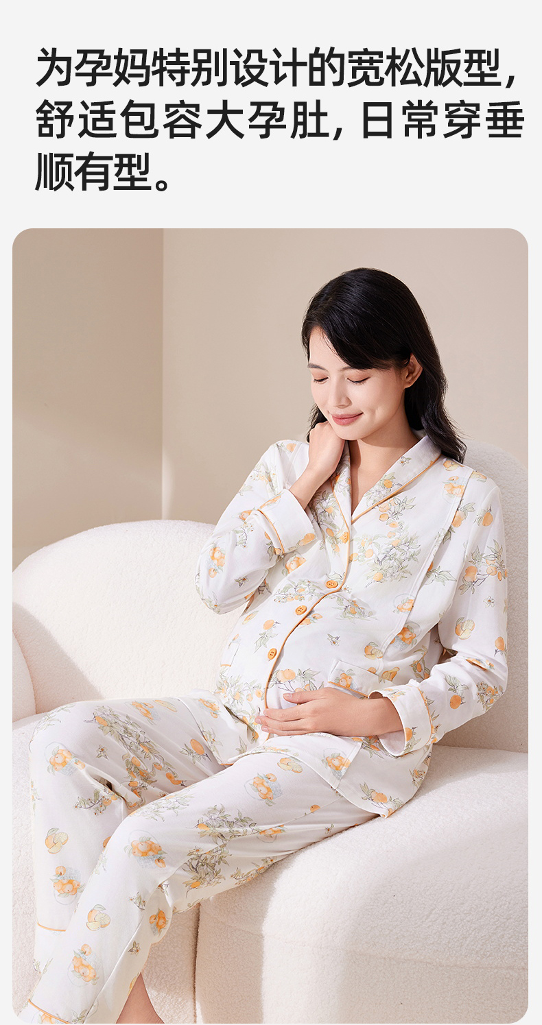【满99-20/199-50】孕妇长袖月子服带胸垫产后纯棉孕妇睡衣