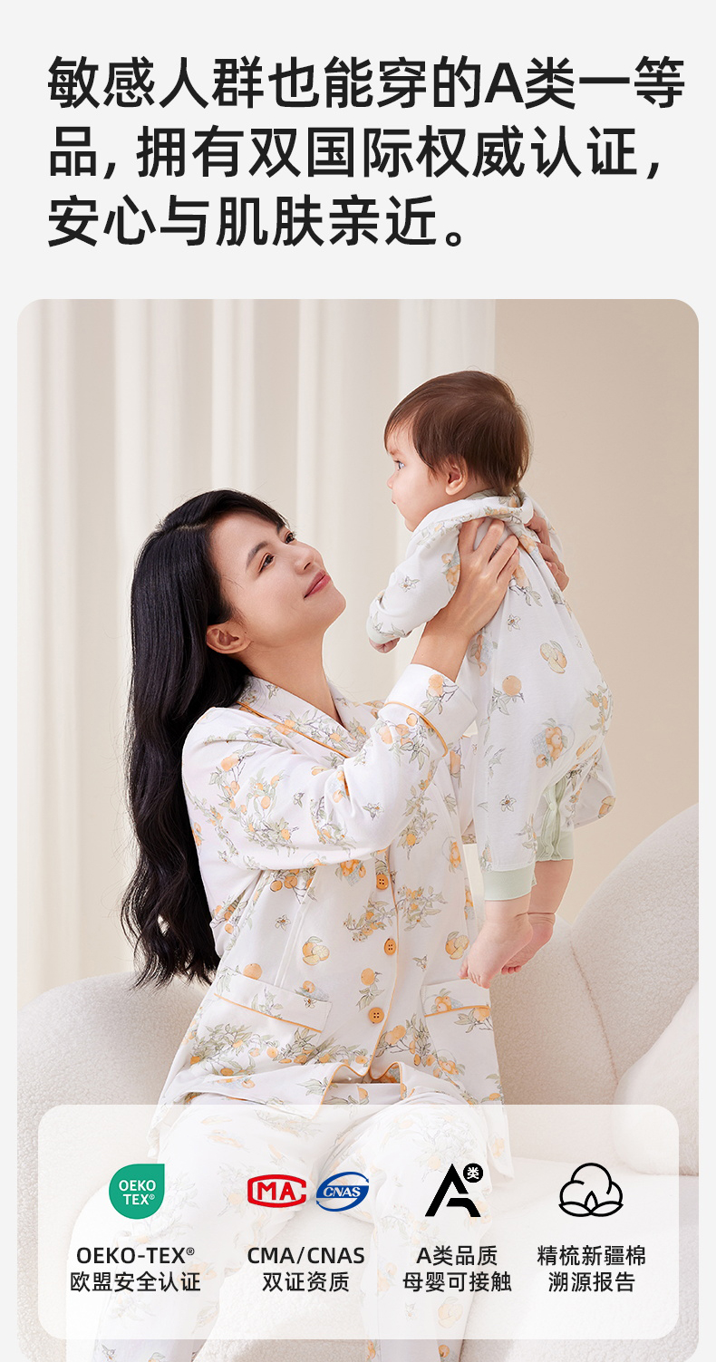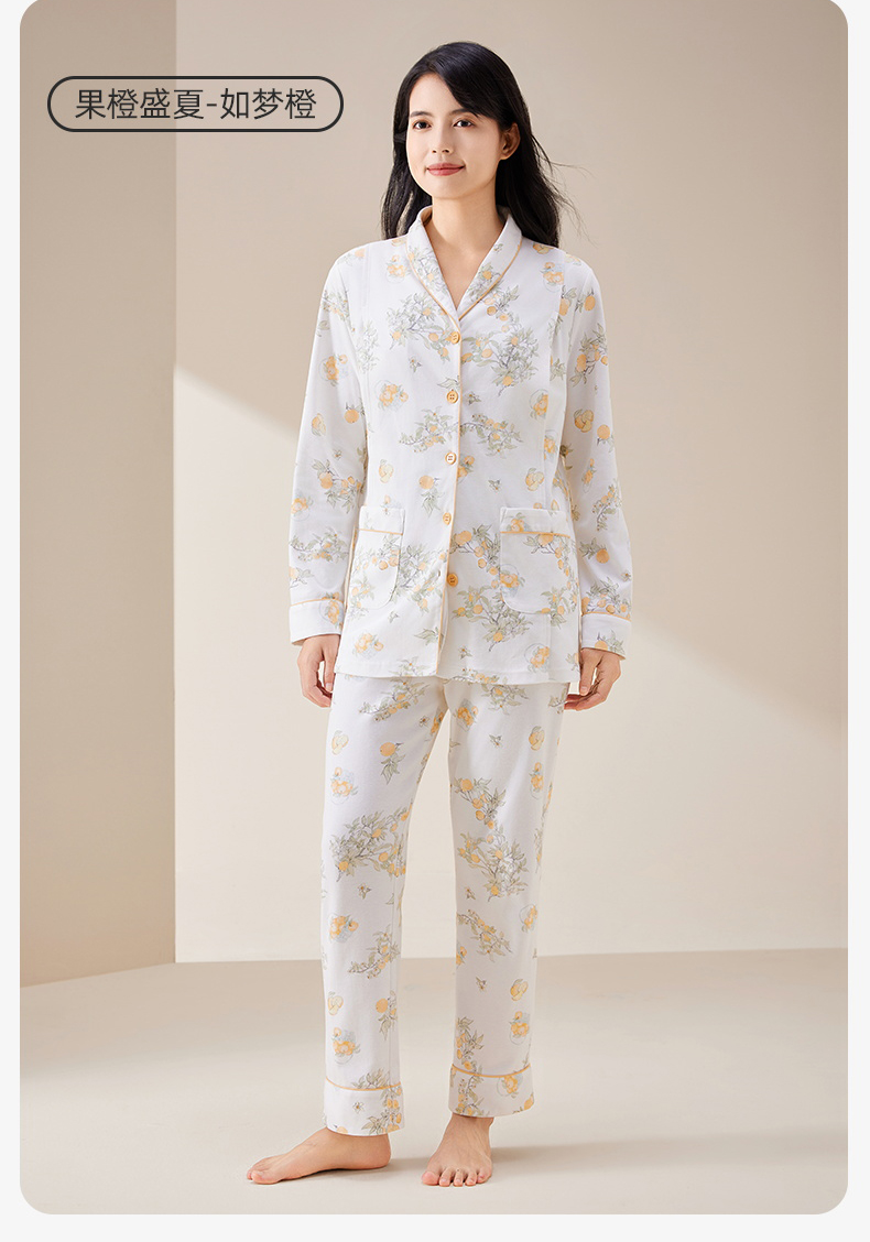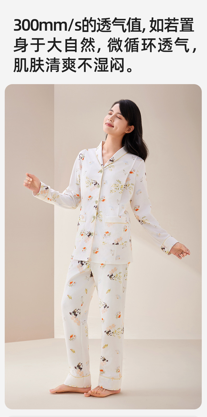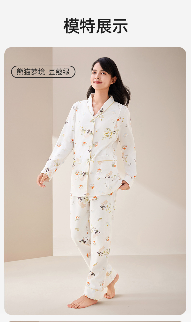 【满99-20/199-50】孕妇长袖月子服带胸垫产后纯棉孕妇睡衣