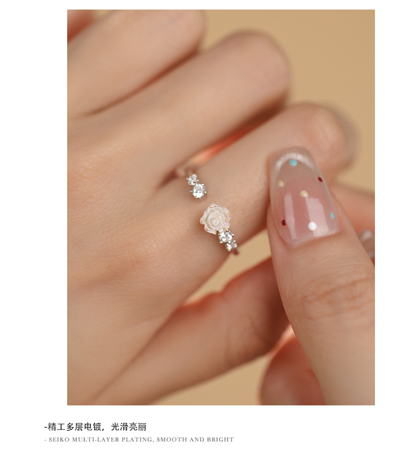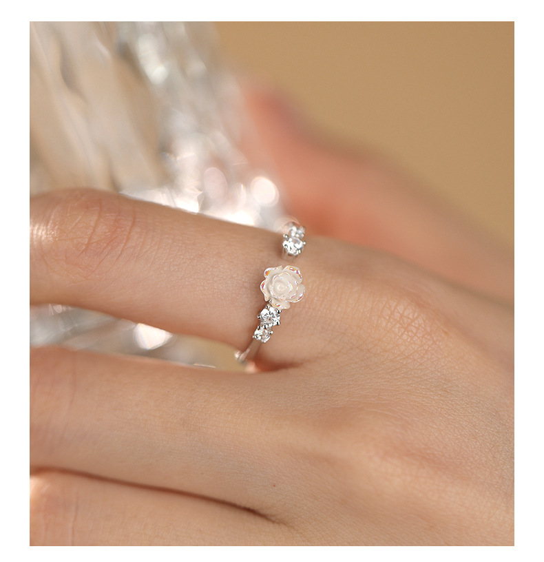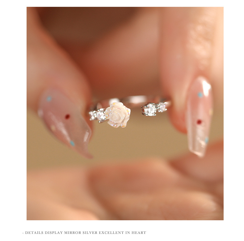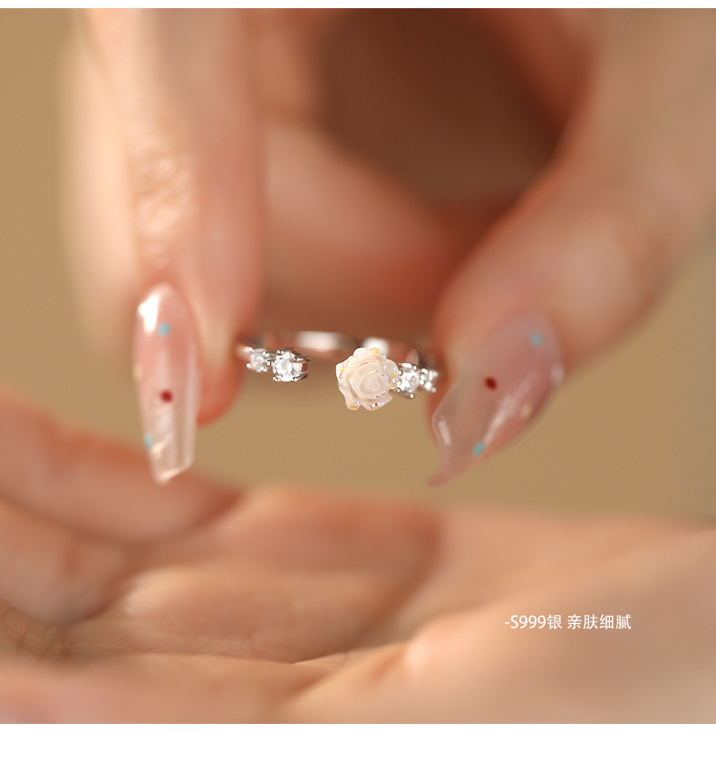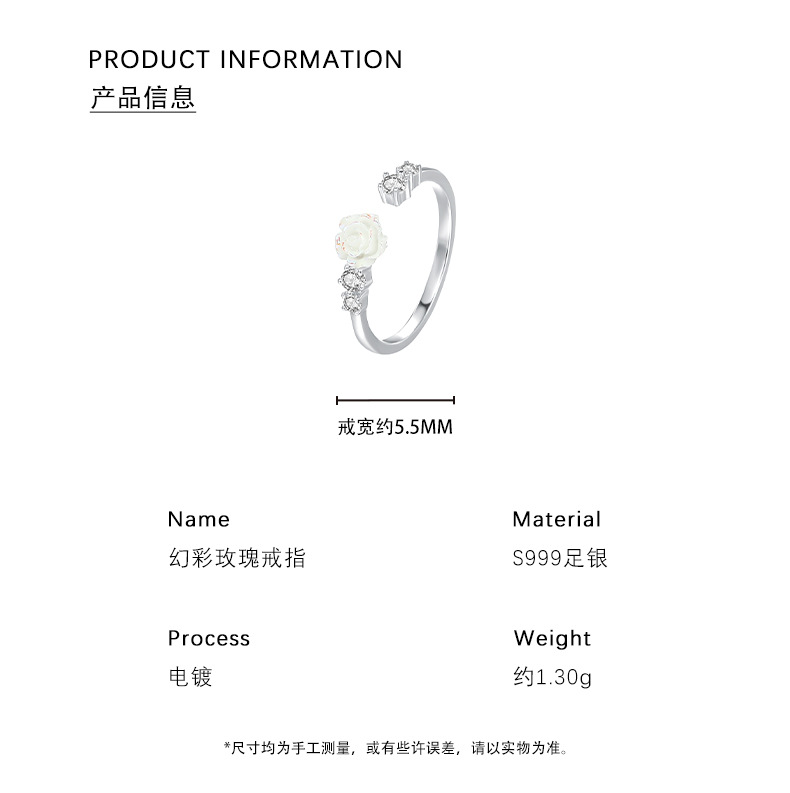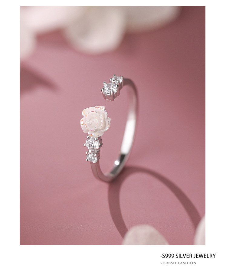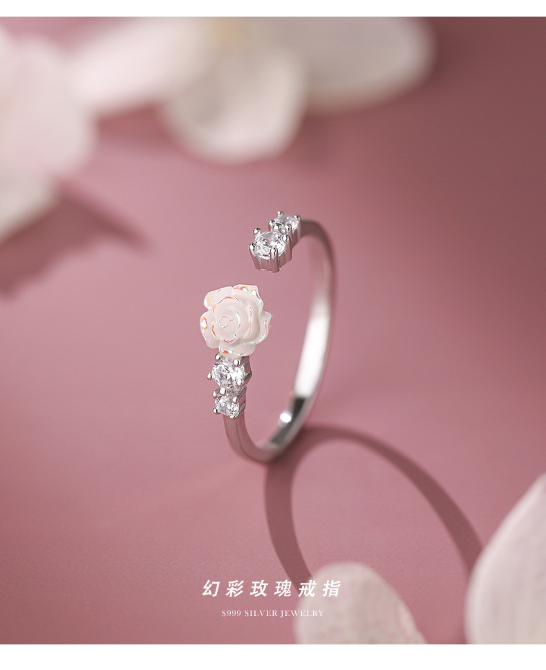 【玫瑰香梦】s999纯银幻彩玫瑰花锆石戒指【YXS-K2200】