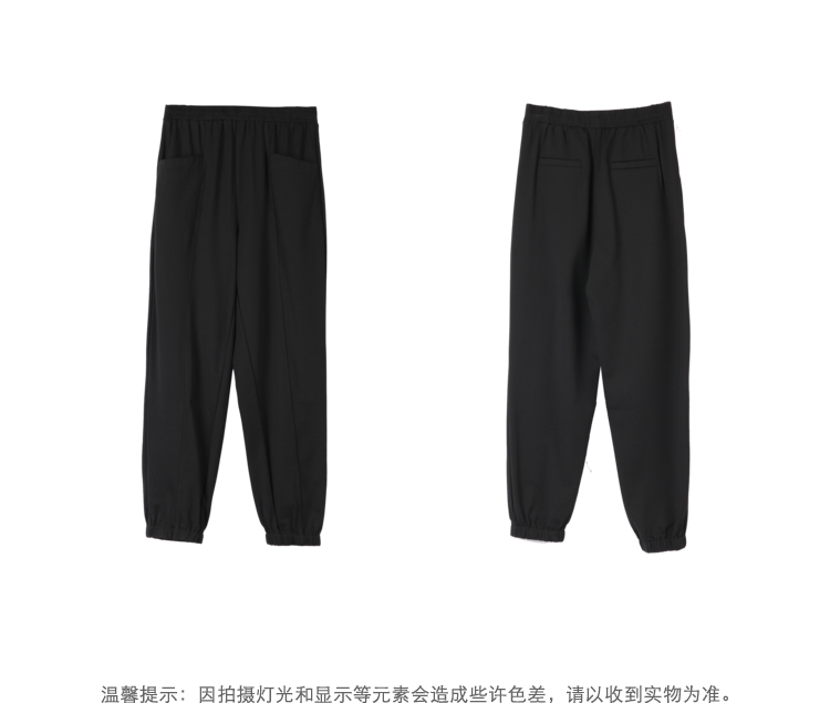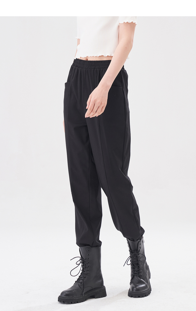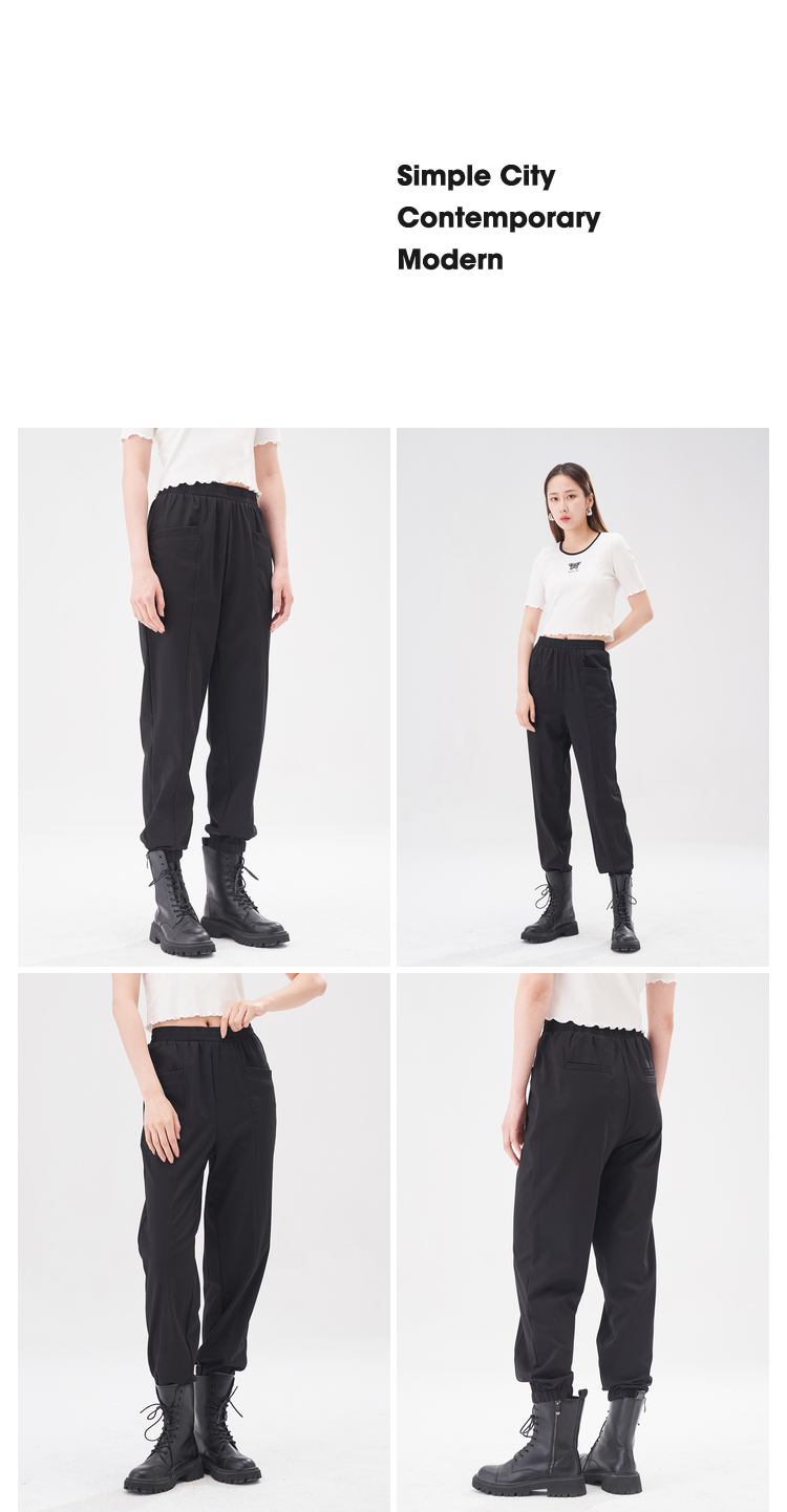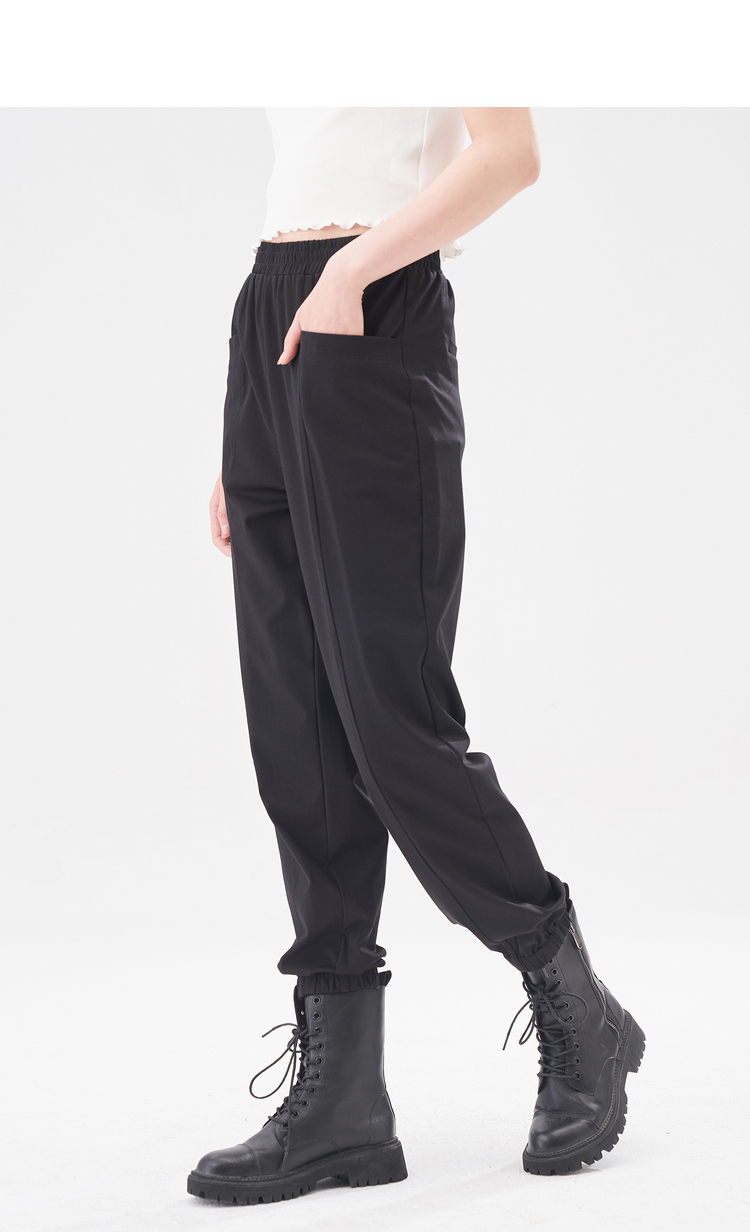NEELLY纳俪商场同款黑色松紧腰束脚裤女2022夏季运动裤薄款百搭N22044H04557