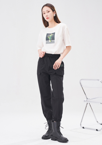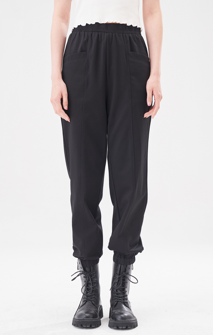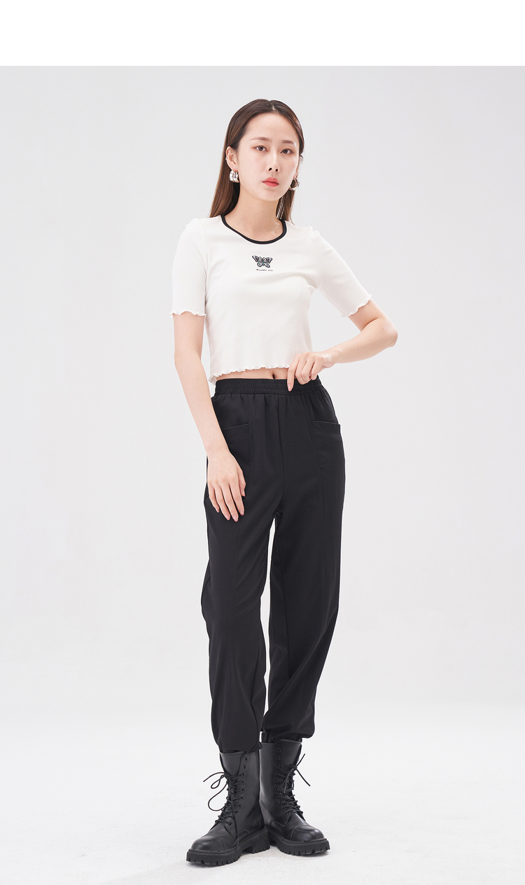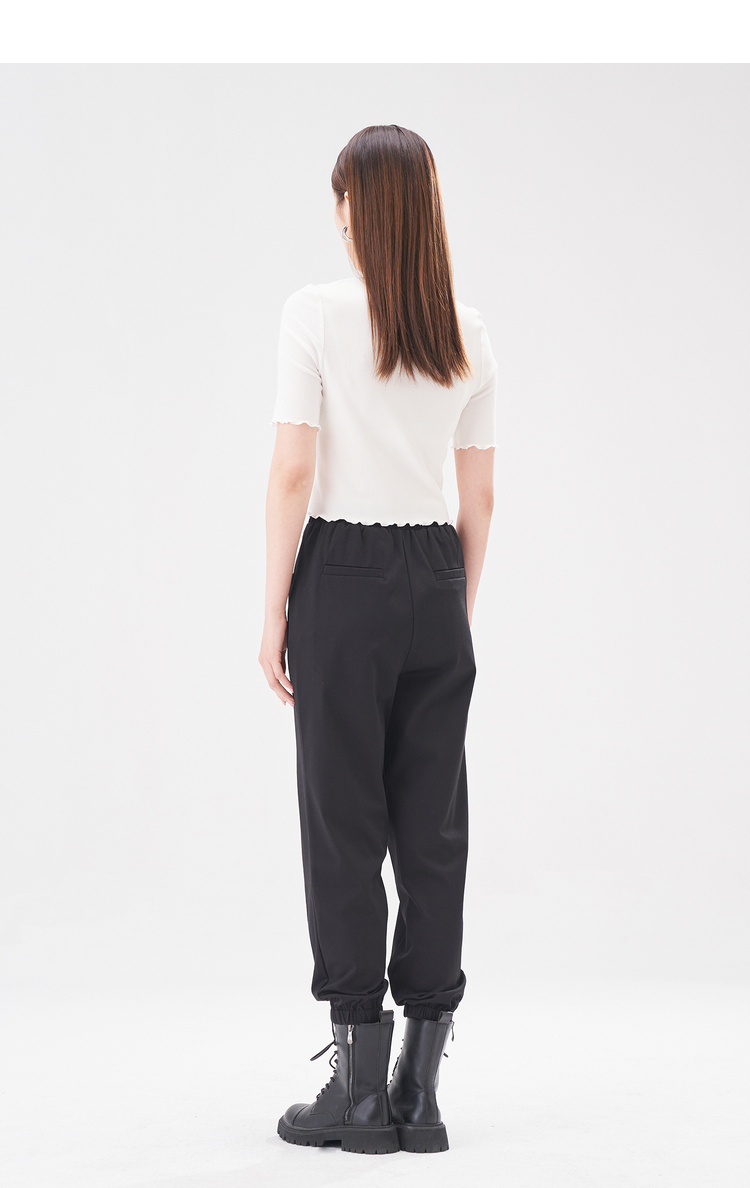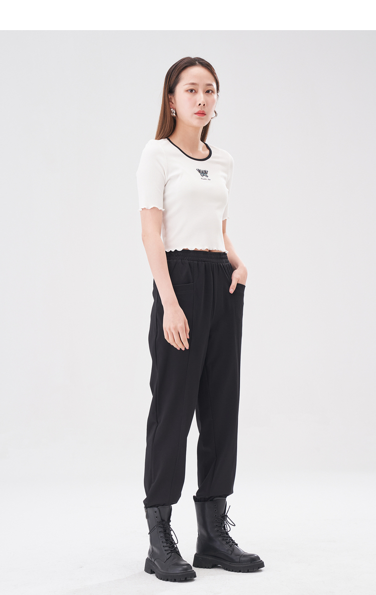NEELLY纳俪商场同款黑色松紧腰束脚裤女2022夏季运动裤薄款百搭N22044H04557