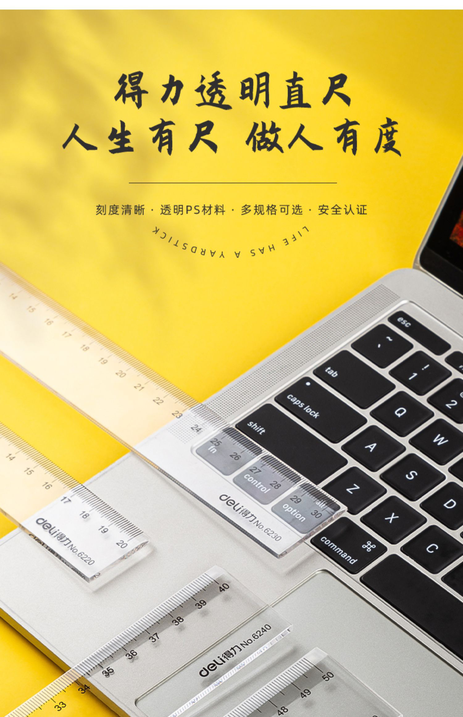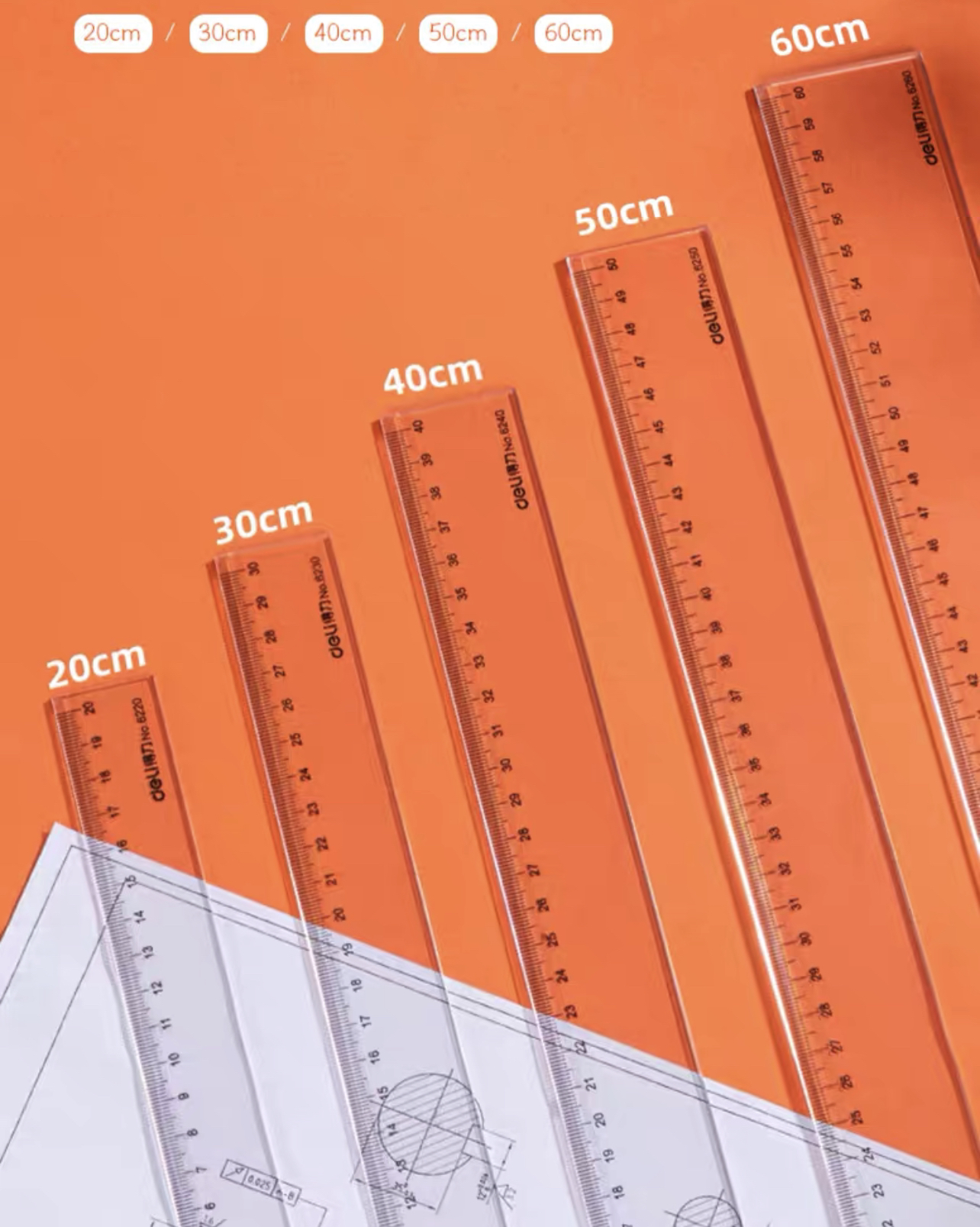 得力直尺多规格尺子学生办公绘图制图测量工具 多规格