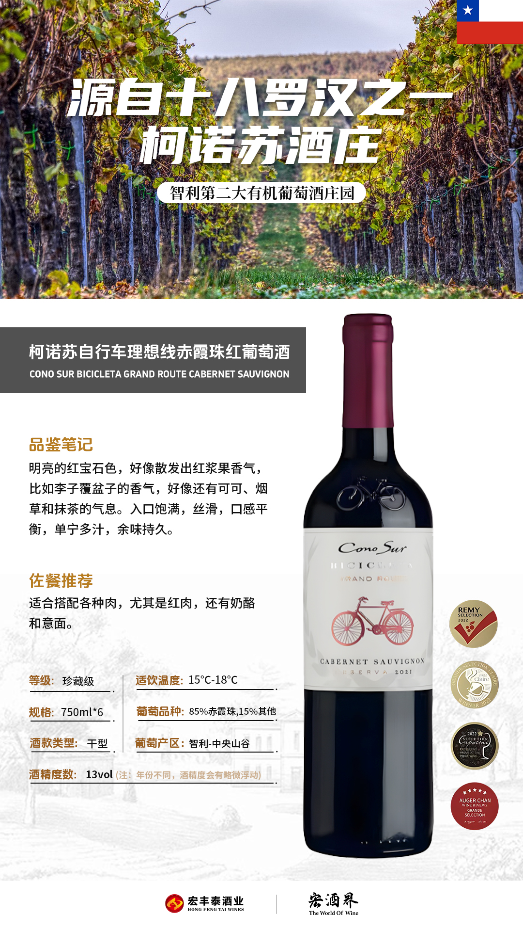 智利-柯诺苏自行车理想线赤霞珠红葡萄酒