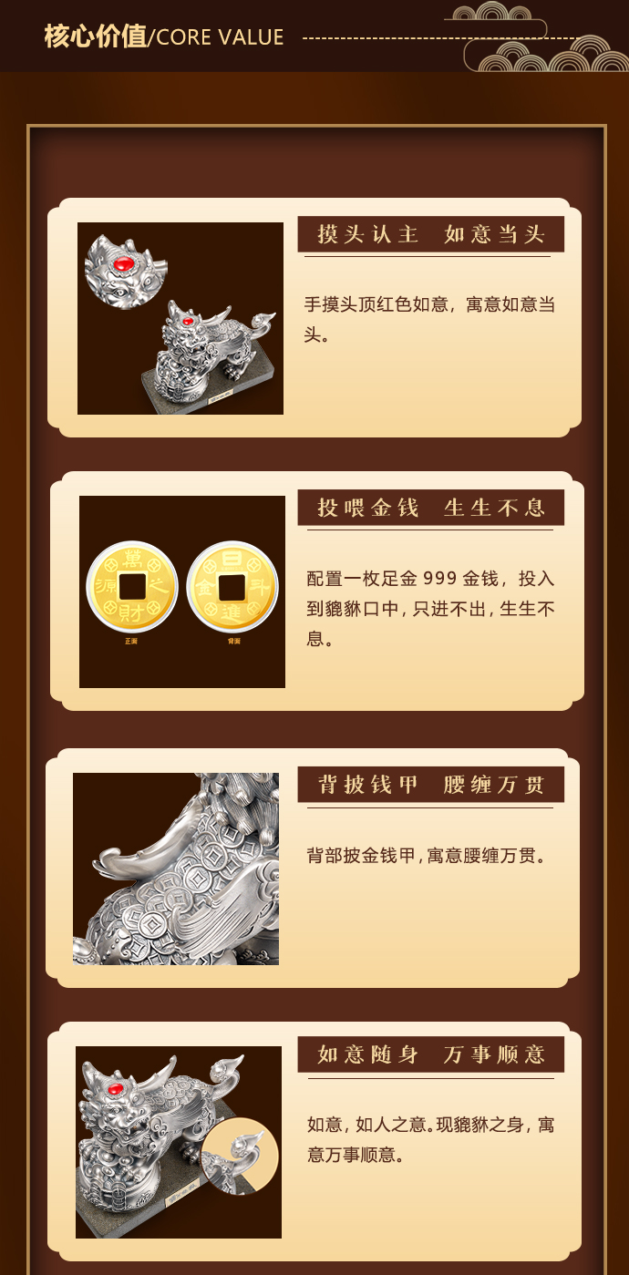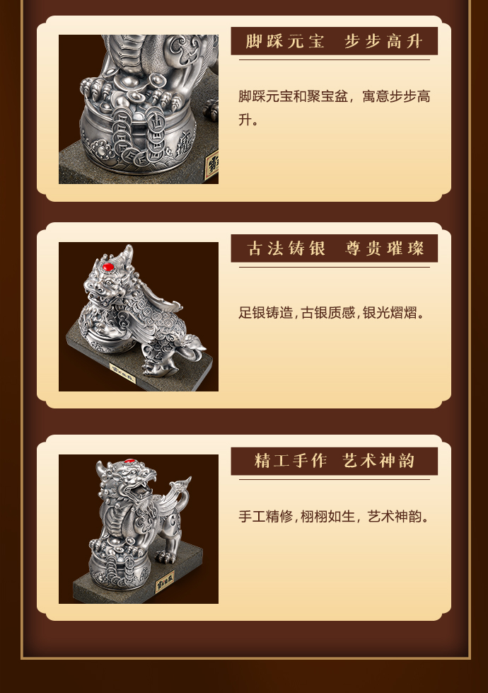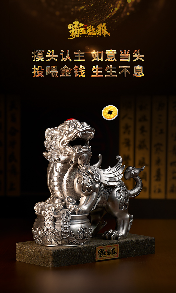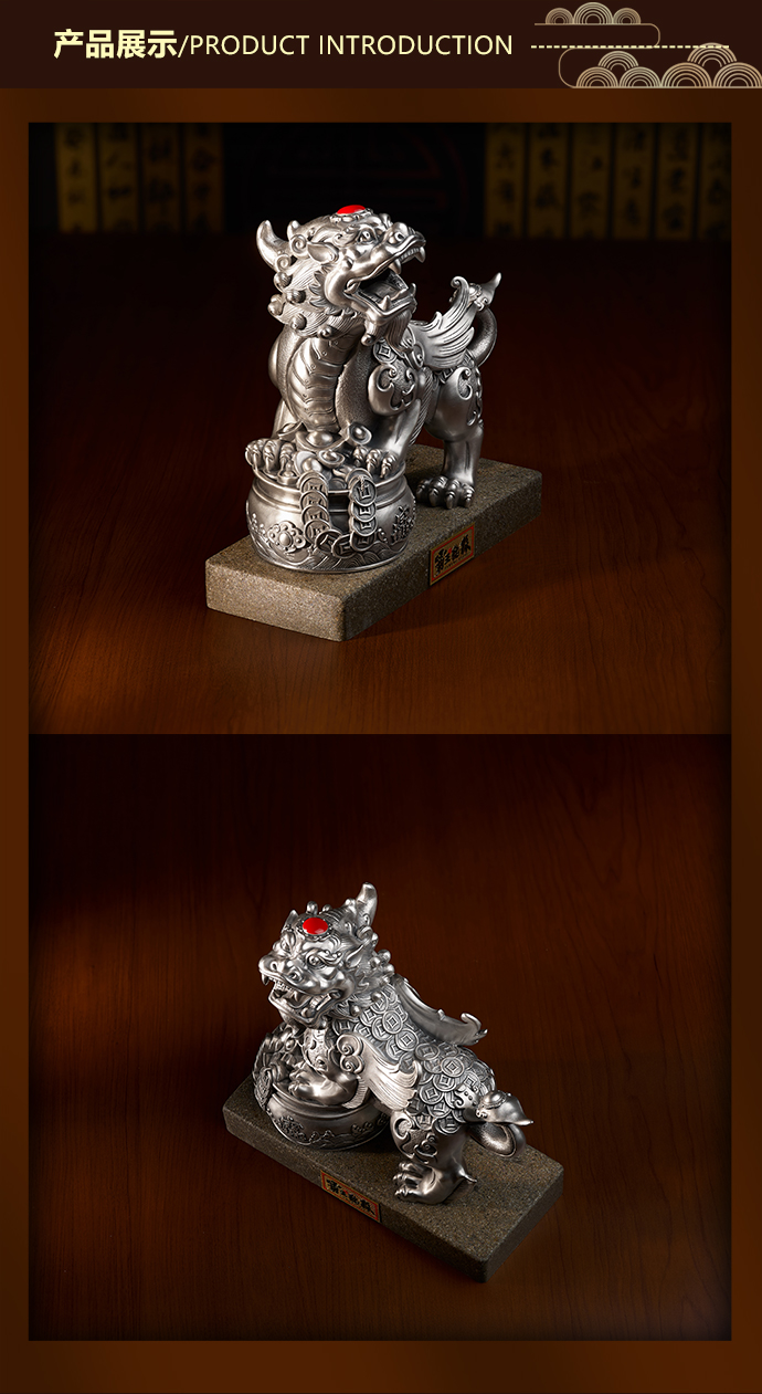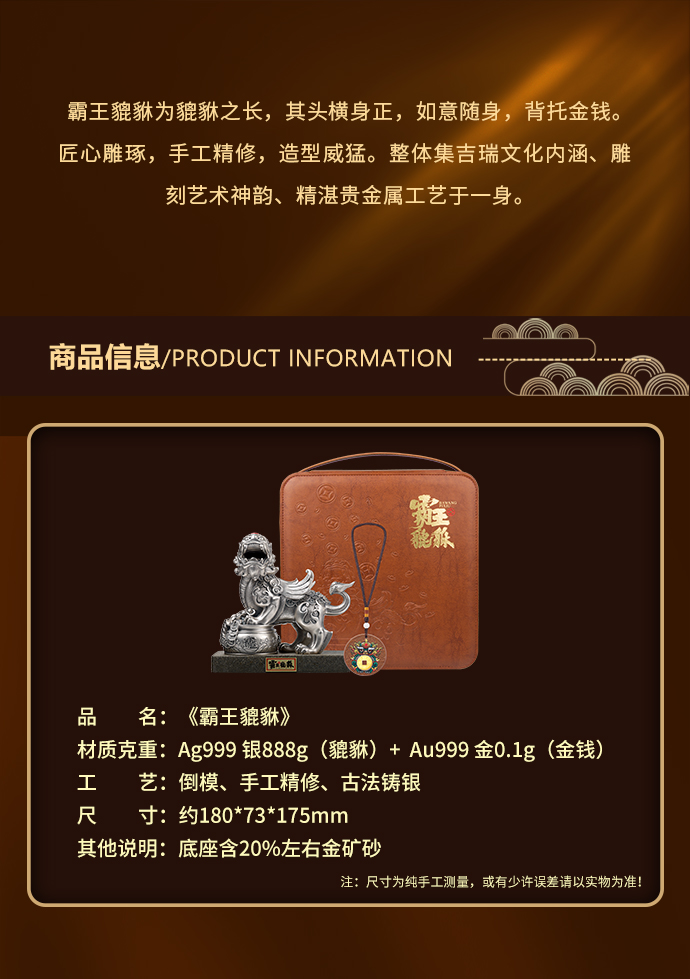 霸王貔貅摆件足银888g工艺品 复古国潮高档商务礼品大气皮质包装