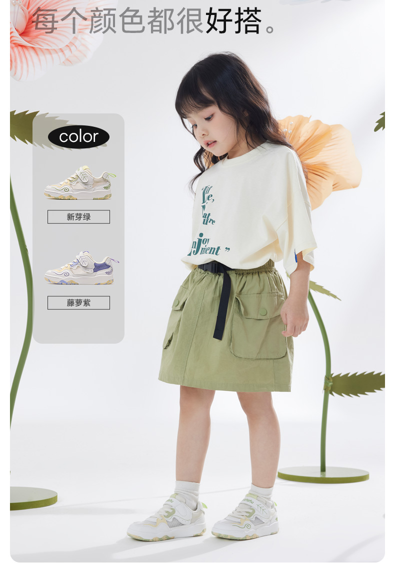 卡特兔童鞋儿童运动鞋2026年春季新品旋钮扣防滑耐磨透气跑步鞋