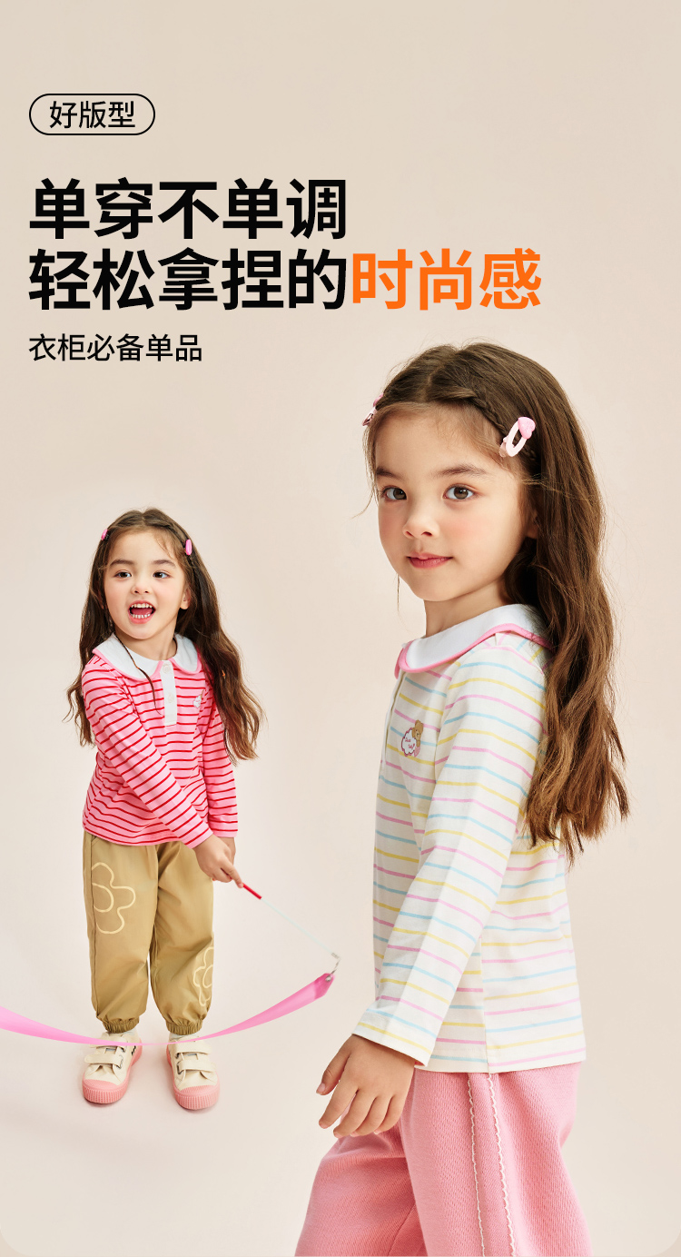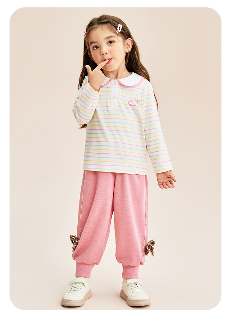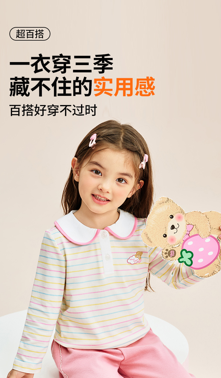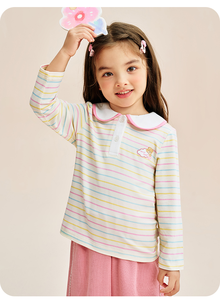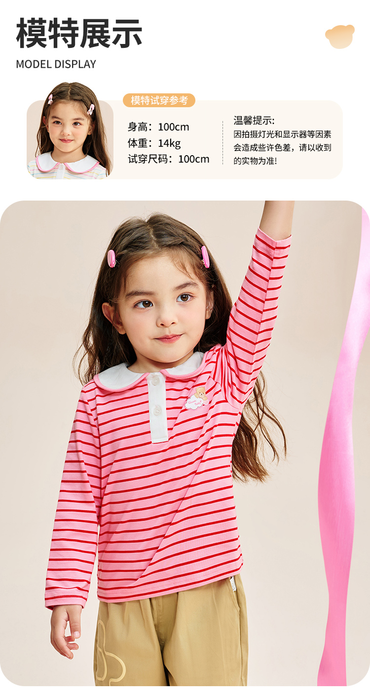 【90-140】【精典泰迪】女童春秋长袖T恤条纹POLO衫