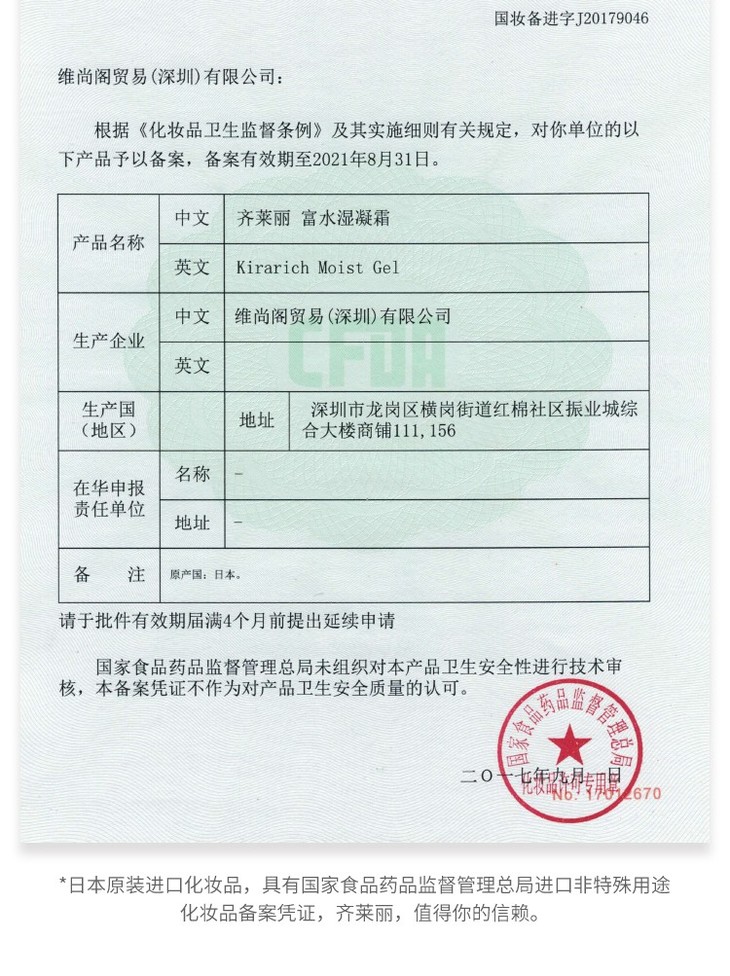 【一般贸易】·日本进口齐莱丽富水湿凝霜100g