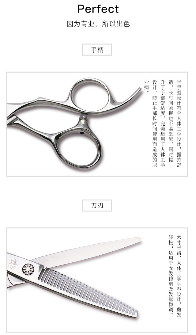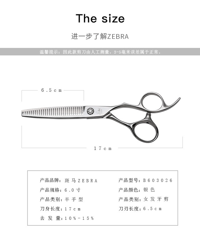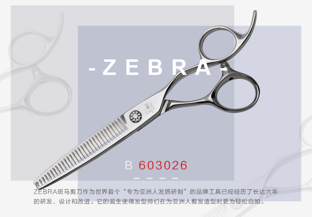 ZEBRA斑马 B603026 剪刀 牙剪/调量剪/无痕牙剪/打薄剪/去发量10-15%/平齿/ 30根齿/正刃/6寸