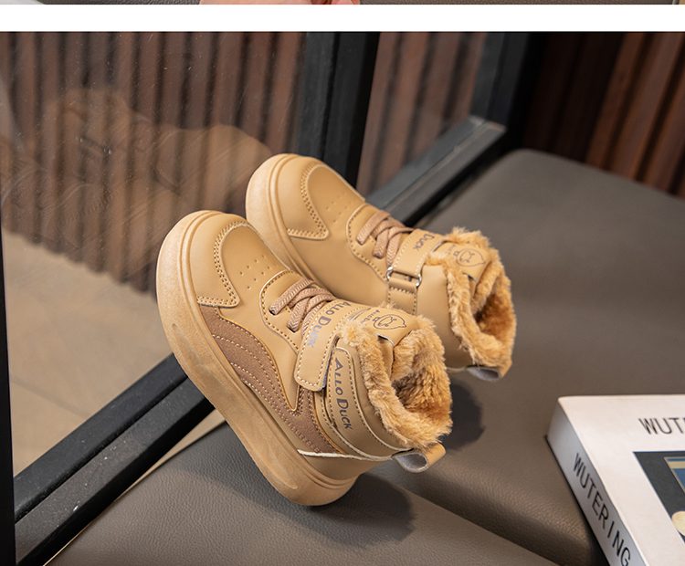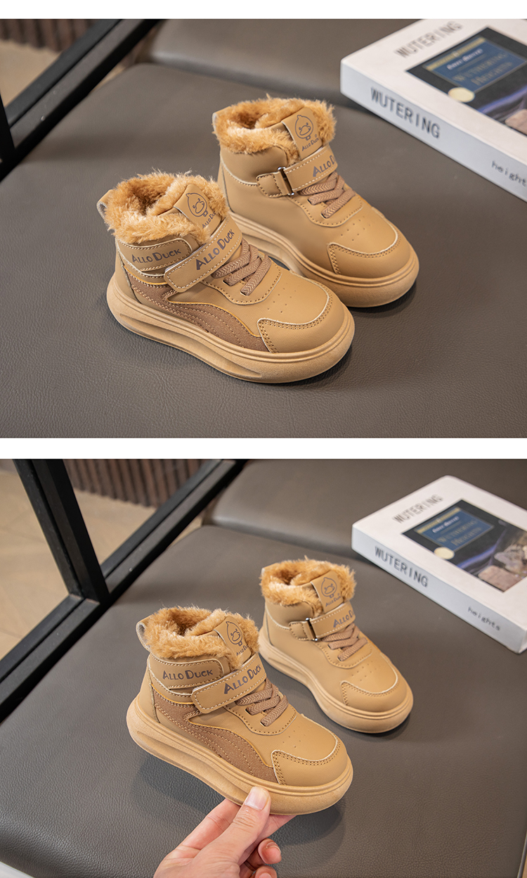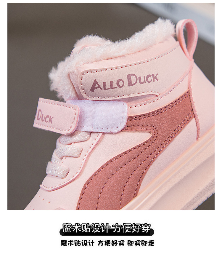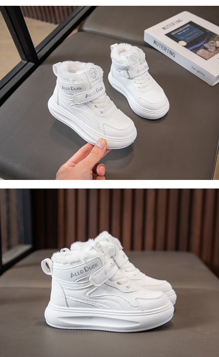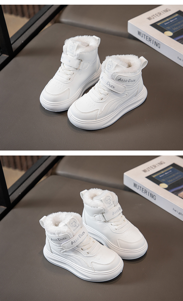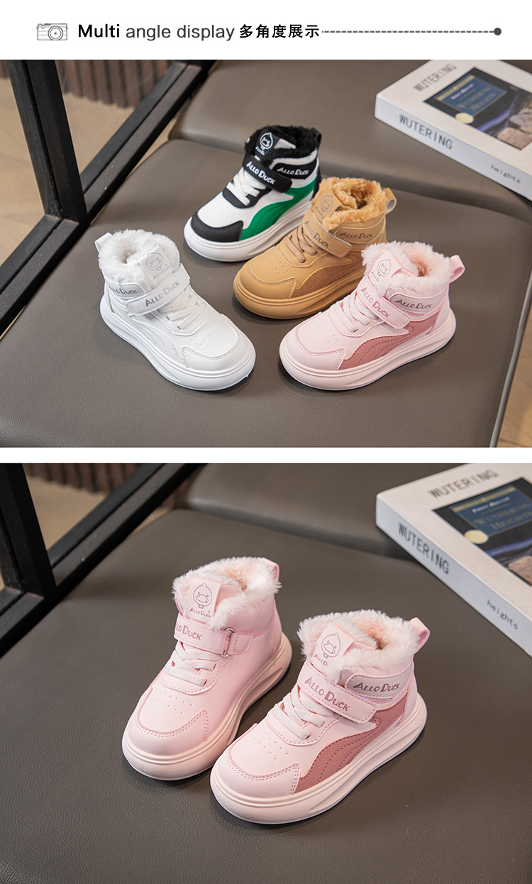 小黄鸭儿童冬季新款运动鞋儿童皮面防水男女童加绒保暖小中童跑步鞋潮22-39