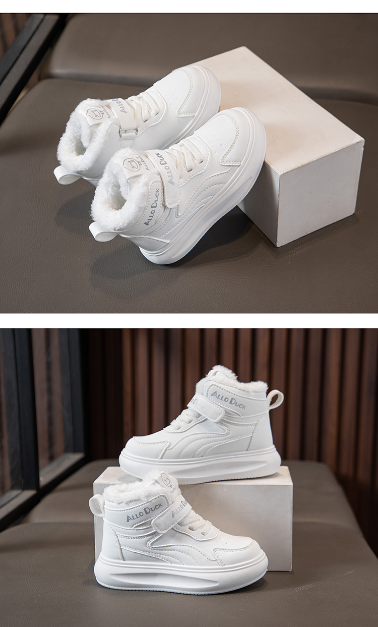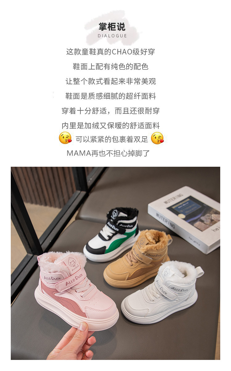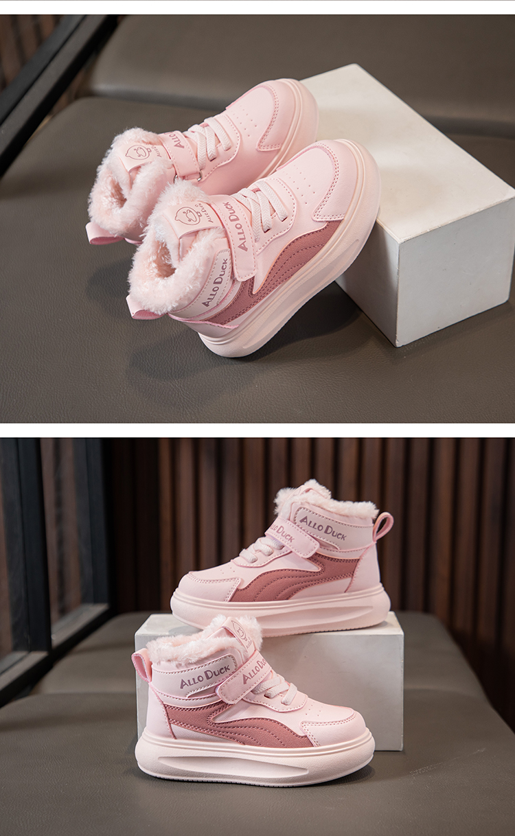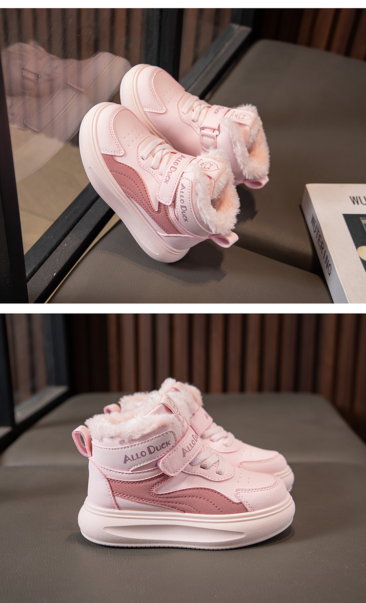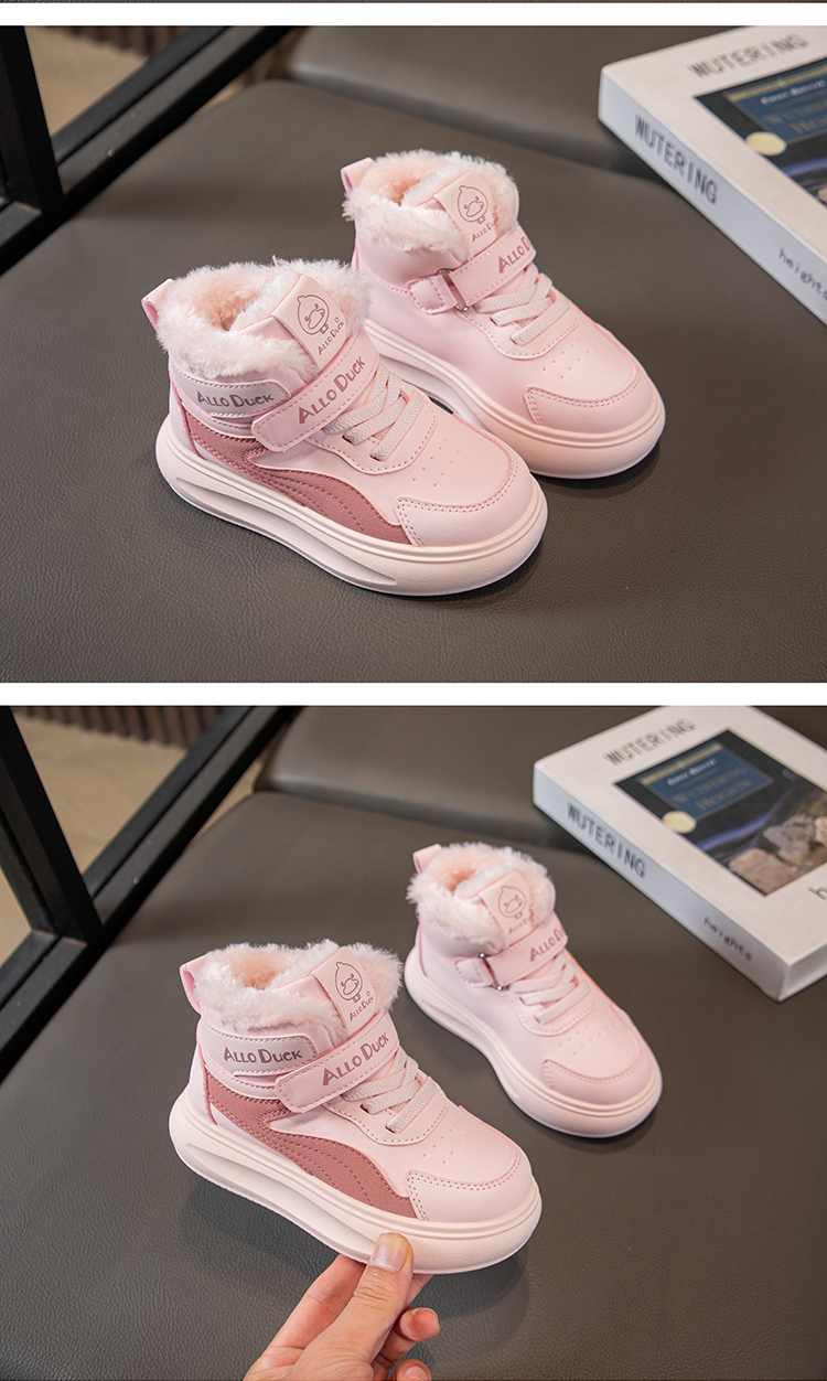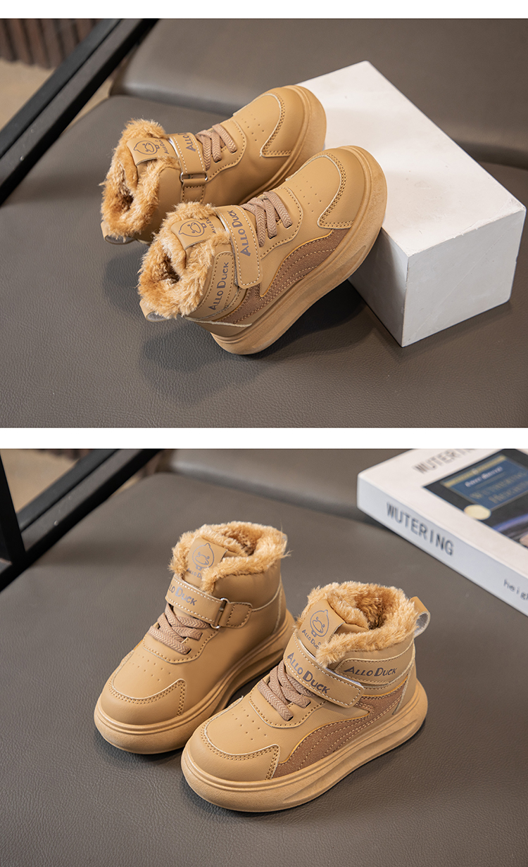 小黄鸭儿童冬季新款运动鞋儿童皮面防水男女童加绒保暖小中童跑步鞋潮22-39