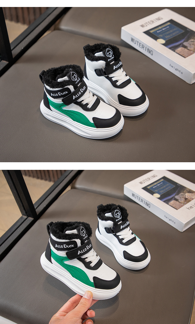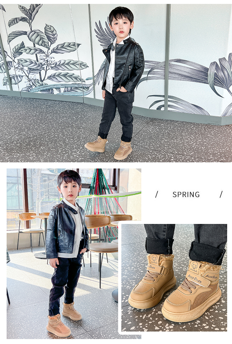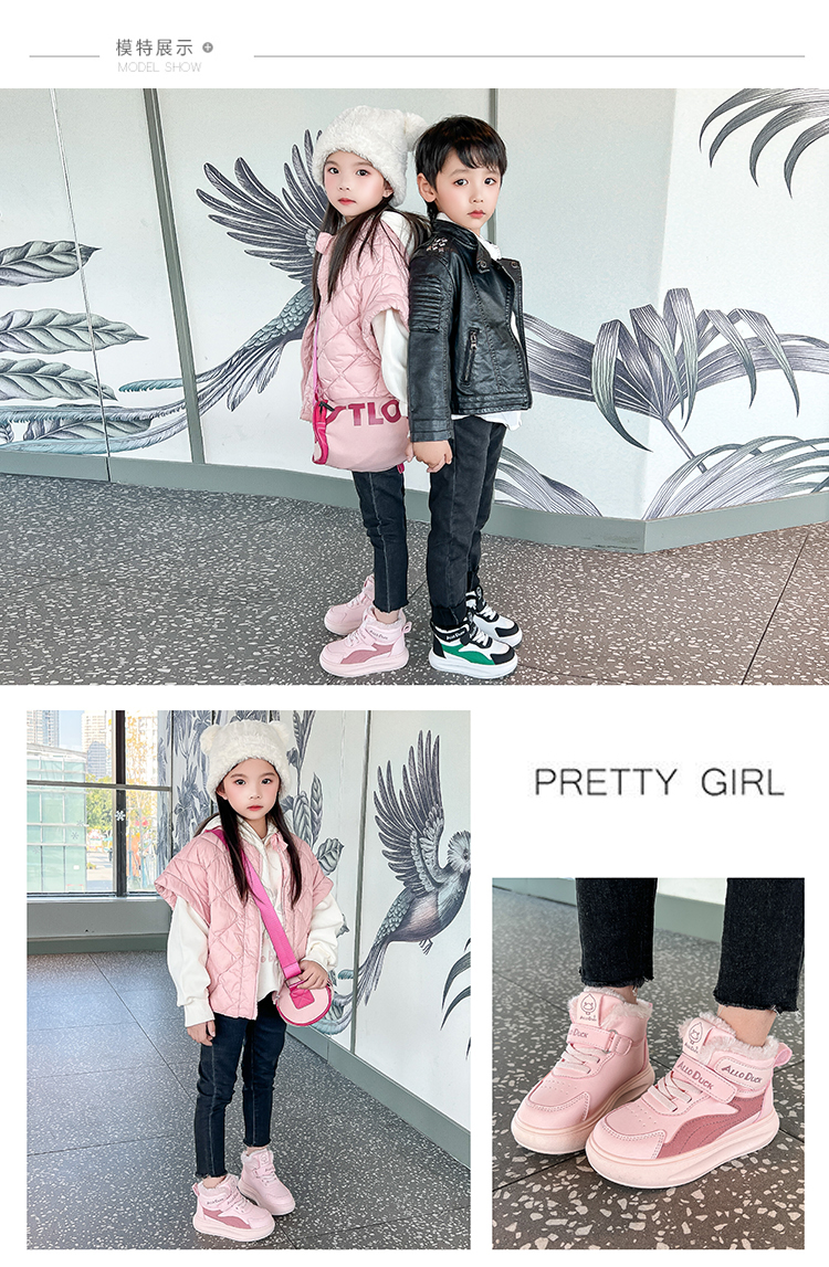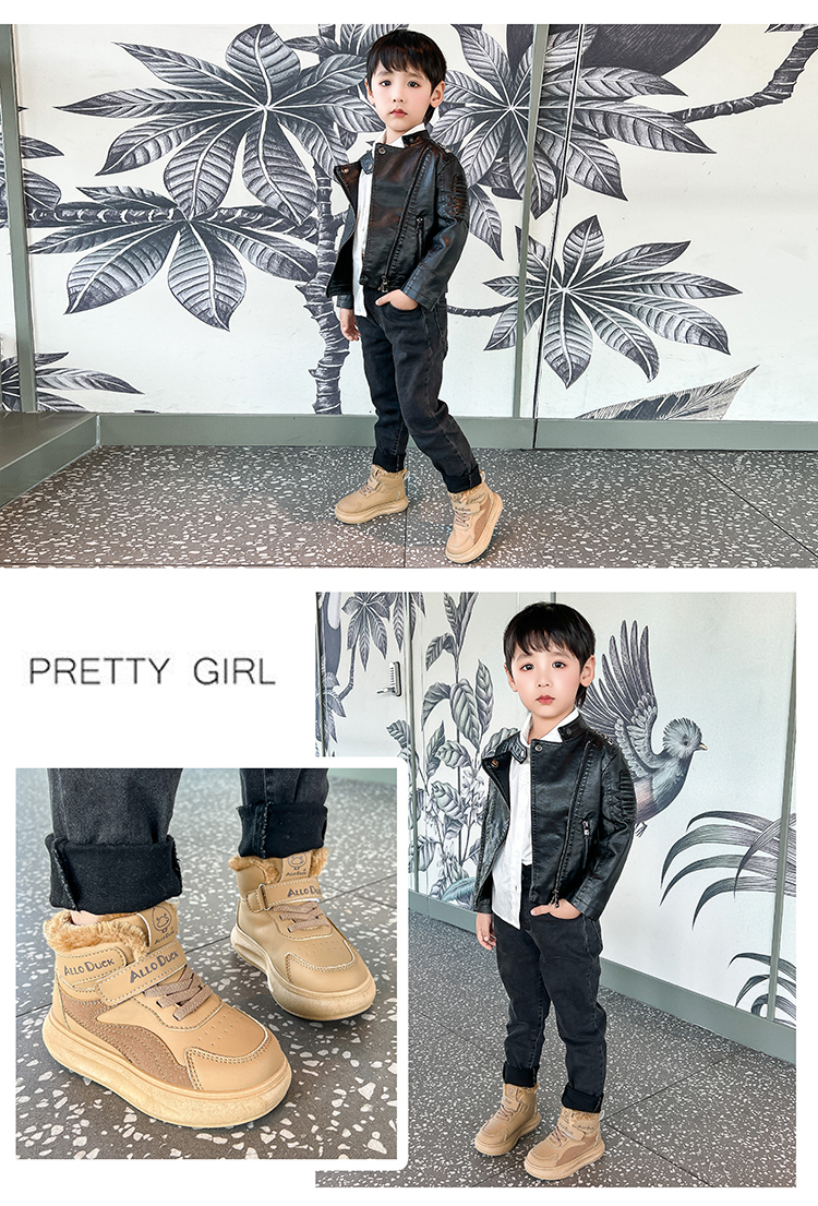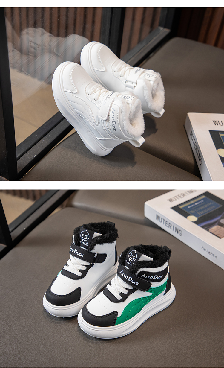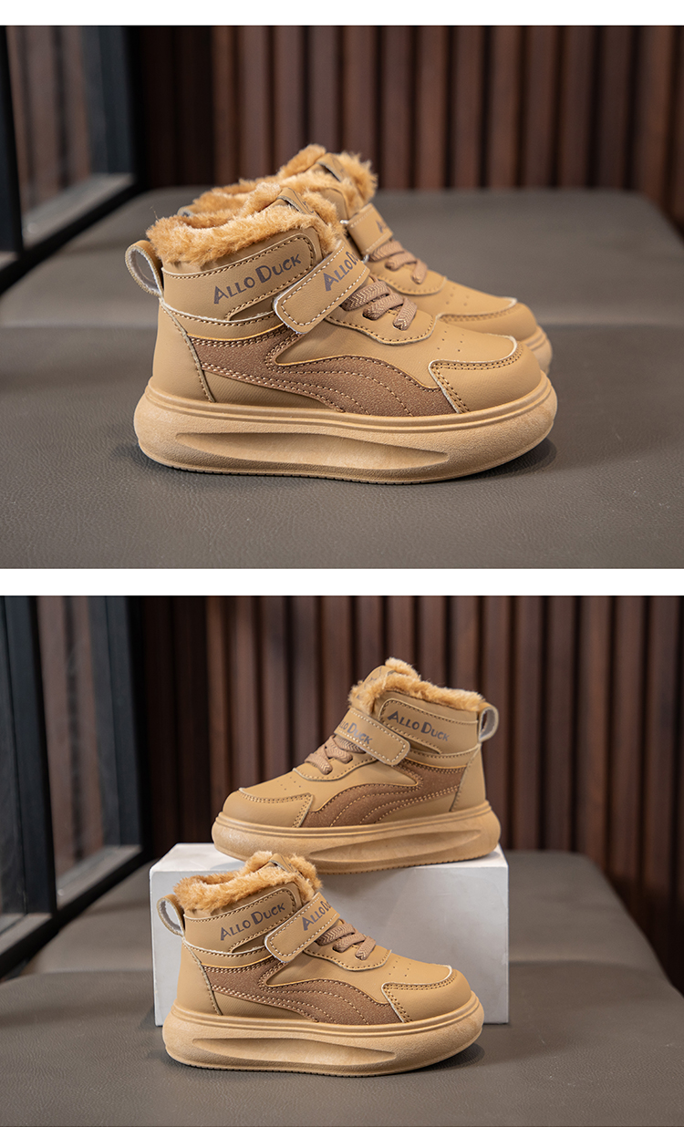 小黄鸭儿童冬季新款运动鞋儿童皮面防水男女童加绒保暖小中童跑步鞋潮22-39