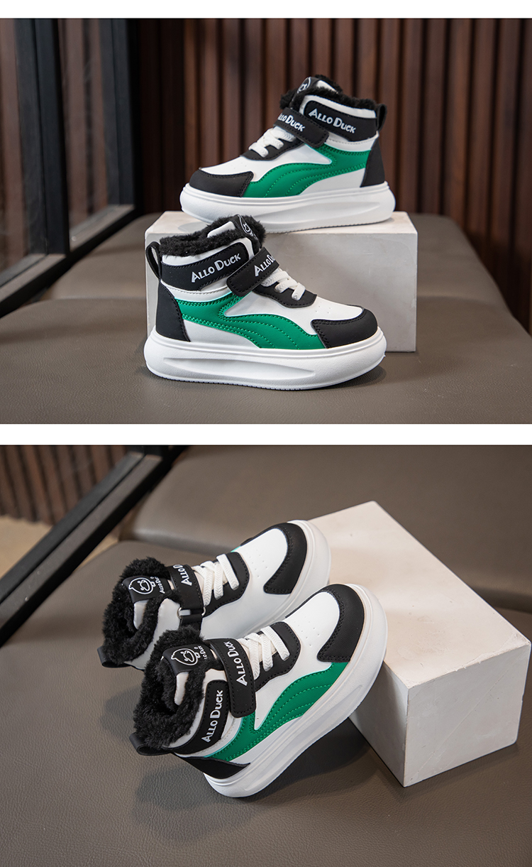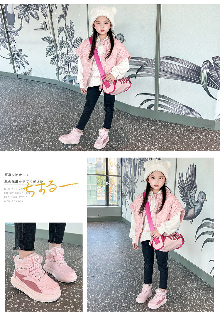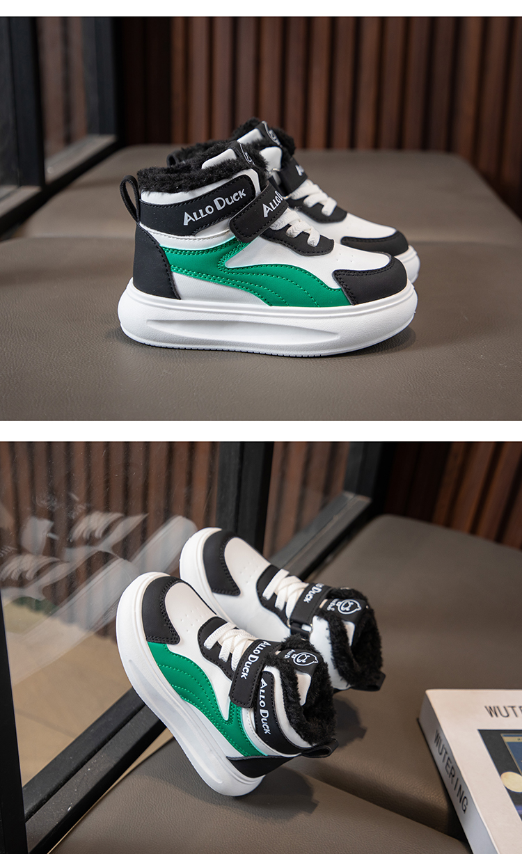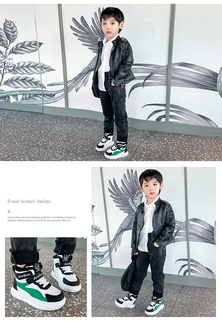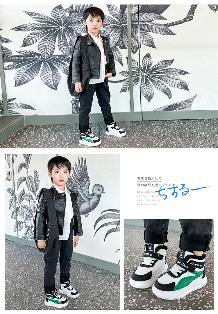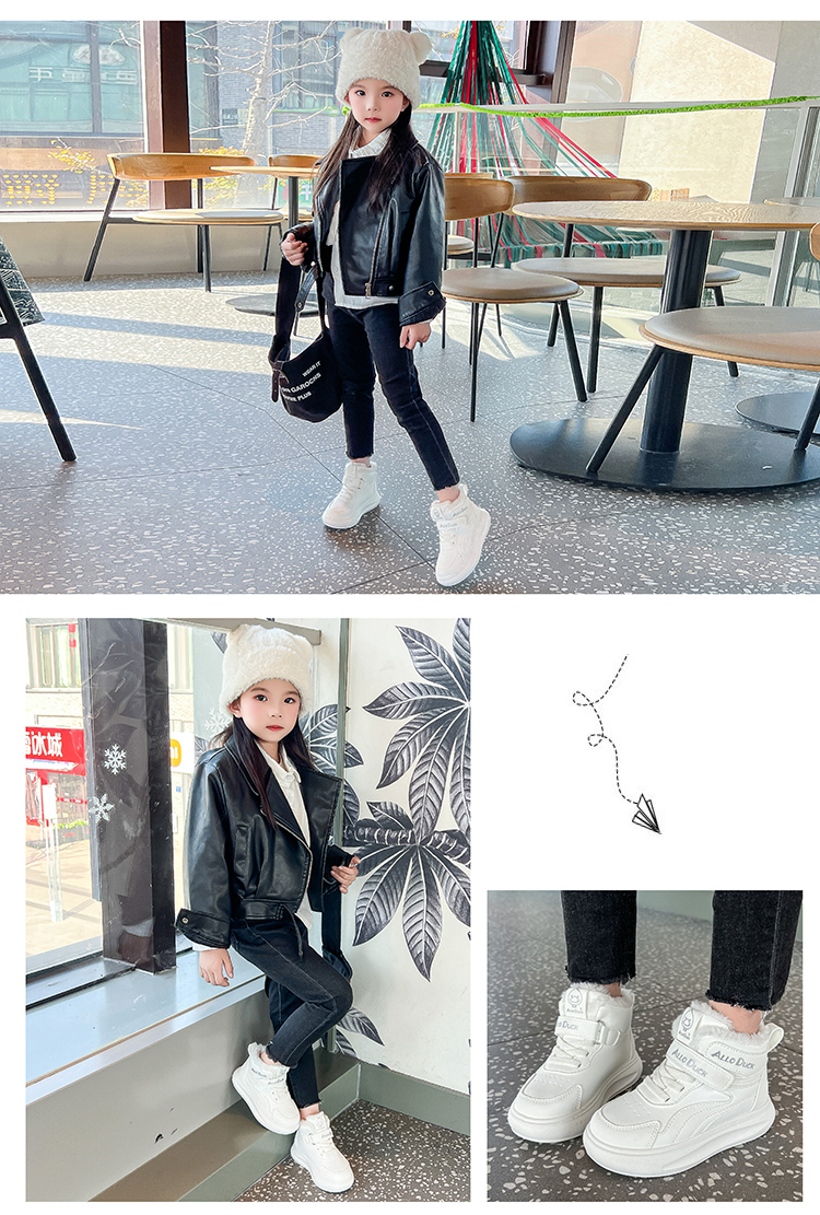 小黄鸭儿童冬季新款运动鞋儿童皮面防水男女童加绒保暖小中童跑步鞋潮22-39