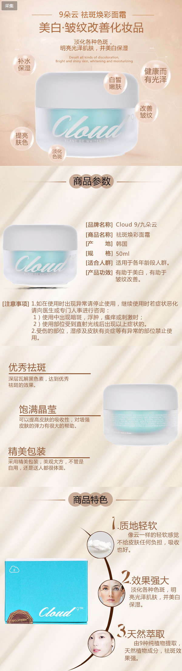 Cloud 9朵云祛斑霜九朵云面霜50ml