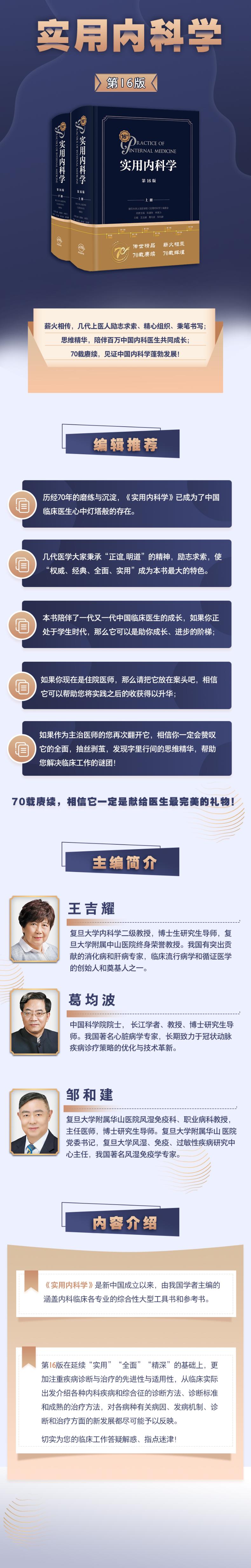 《实用内科学》是新中国成立以来国内影响优选和版次最多的大型临床医学专著,有着深厚的历史沉积,为培养、造就我国几代临床医师作出了不可磨灭的贡献。本书内容全面,编写严谨,从临床实际出发,重点突出诊断与治疗的先进性和实用性,对内科疾病各病种有关病因、发病机制、诊断和治疗方面的新进展和新理念都尽可能予以反映。本次修订在结构上对某些篇章和目录作了重新编排;编写内容紧密配合临床,增加医学人文及中国内科医师关注的问题等相关内容。本书阅读对象是全国各级医院内科医师;同时可作为其他专业的各级专科医师,掌握非本专科的内科疾病诊治用的参考书,以优化其处理各科内科综合情况的能力。