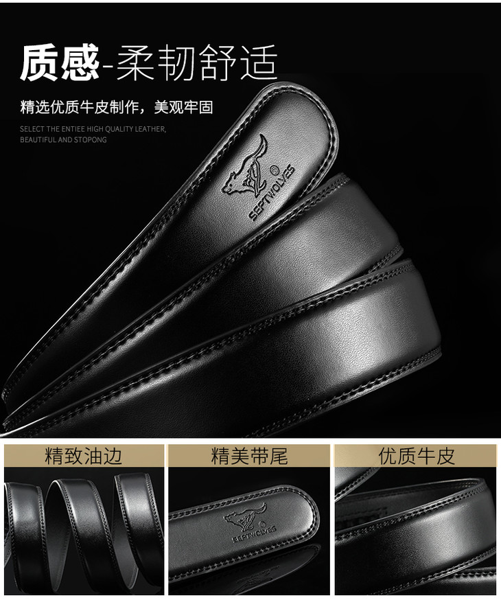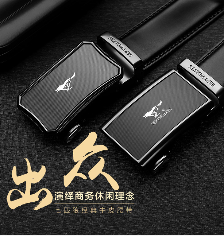 七匹狼男士皮带潮流百搭中青年牛皮自动扣腰带男休闲商务裤腰带M73821A807-01 黑色