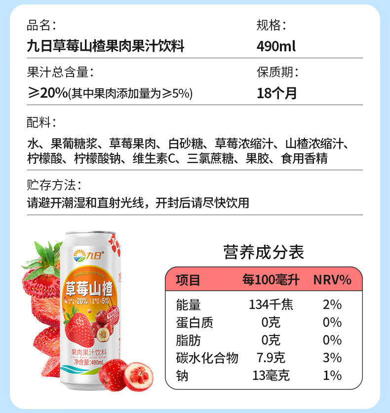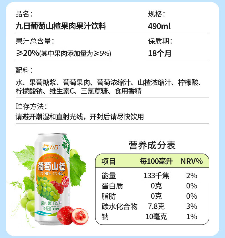 九日大果肉果汁饮料490ml