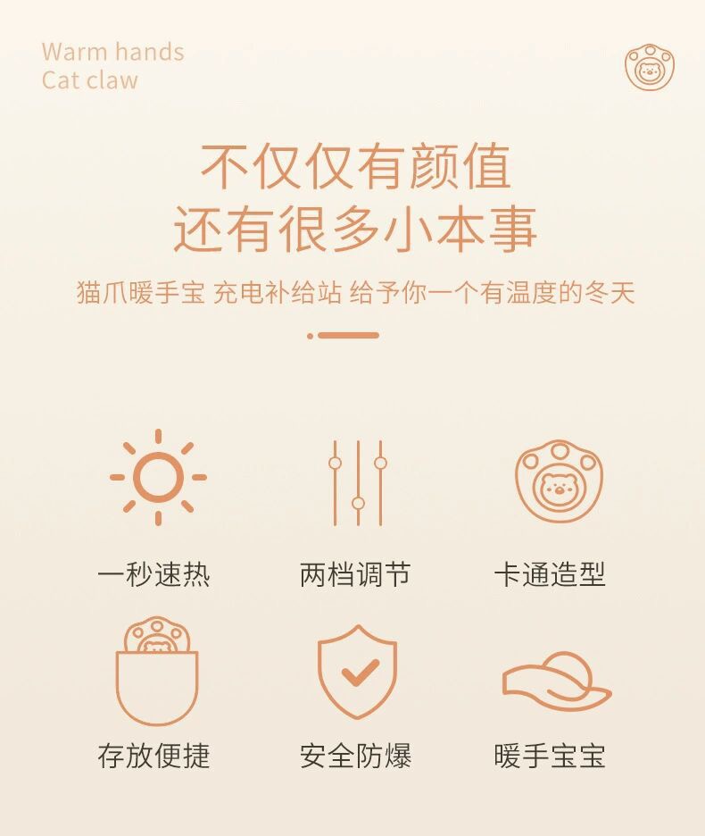 【品名】抖音爆款充电式猫爪暖手宝