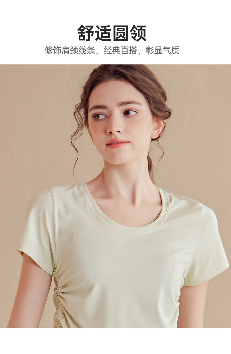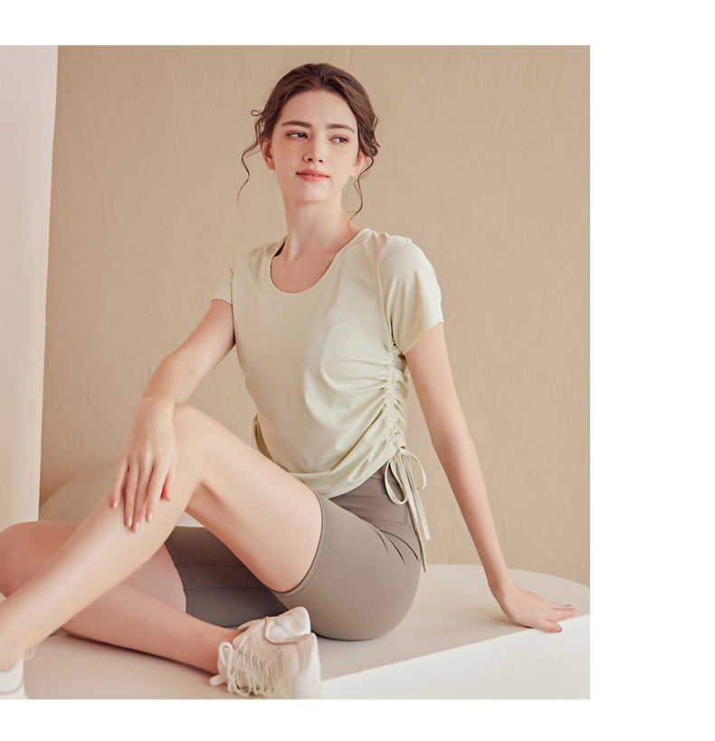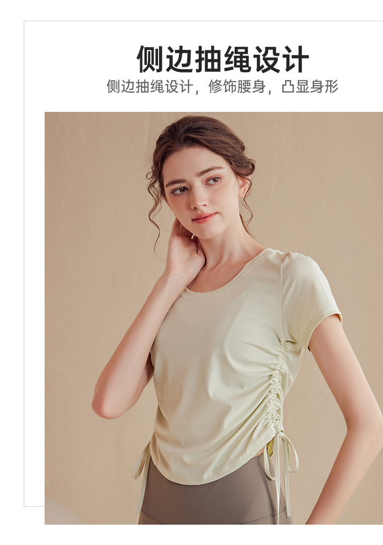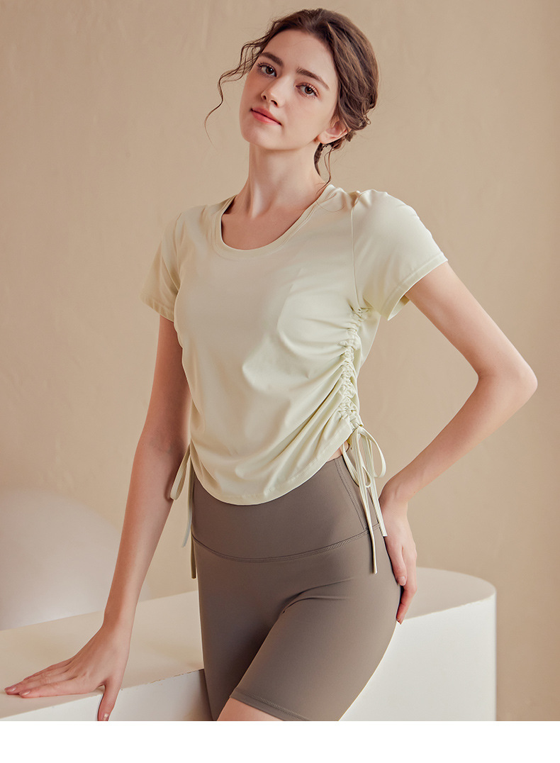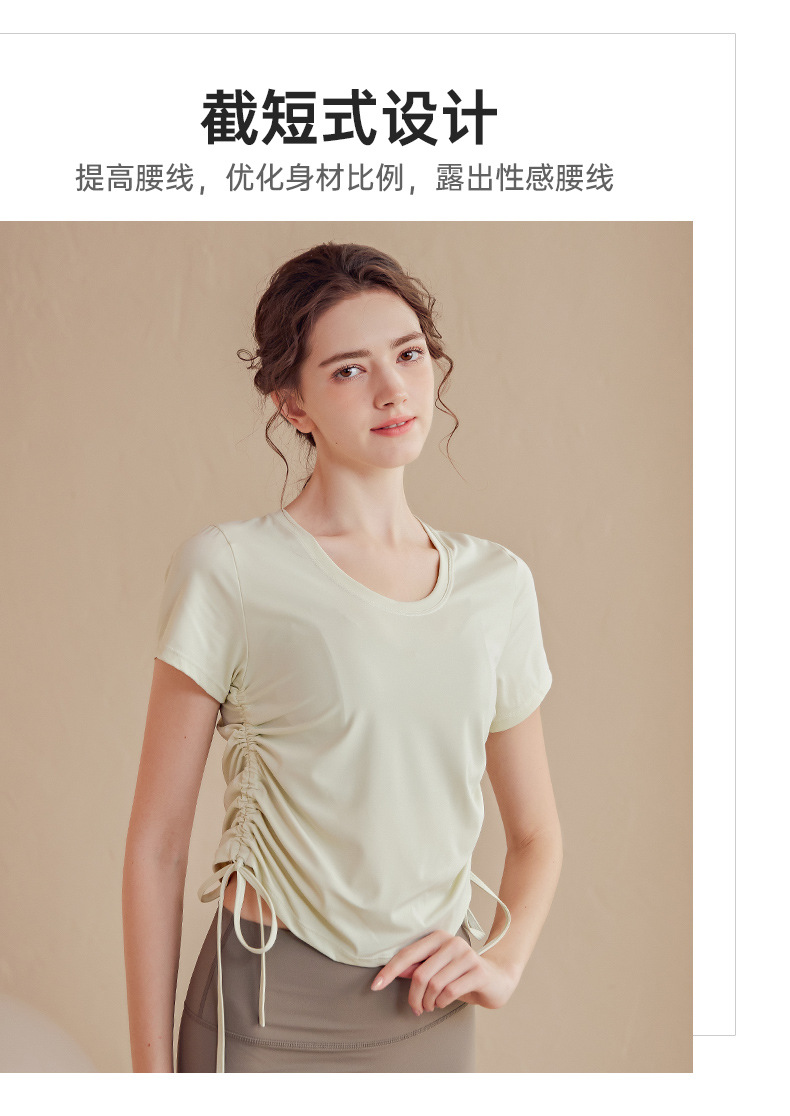 2023luulu新品双侧抽绳高端莱卡luulu瑜伽服女性感速干透气运动短袖上衣T恤