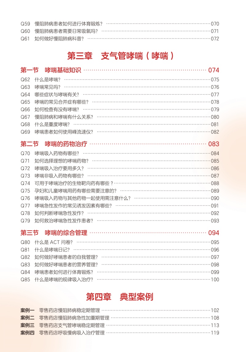 本书围绕慢阻肺病、哮喘等呼吸系统慢性疾病的全程管理,系统构建四大核心板块:1.疾病知识体系化解析2.药物治疗全流程指导3.患者管理实践方案4.典型案例深度剖析精选8大临床场景(如稳定期用药依从性管理、吸氧误区等),通过真实案例演绎规范化处理路径,为零售药房药师提供标准化指导工具。首创”问题导向式”编写体例,围绕临床100个高频问题展开(如“漏服药物如何补救?”“吸入装置如何评估使用效果?”),精准匹配药师实际工作场景。